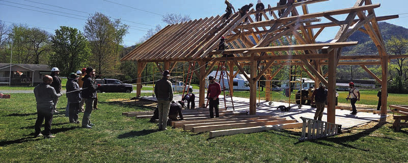 Still, the program endures. With support from VMI instructor Donnie Martin, funding help from the CEE department, and a now welltrained local leadership team of about 10 volunteers, the Mullens continue to lead spring and fall timber framing projects across the region.