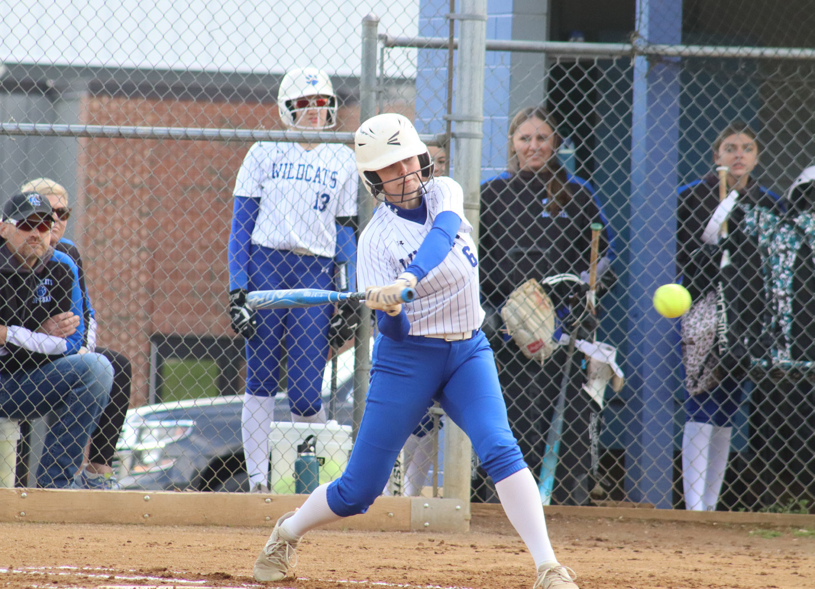 WILDCAT JUNIOR Page Wright takes a swing. Wright had one hit, one walk and two RBIs. (Stephanie Mikels Blevins photo)