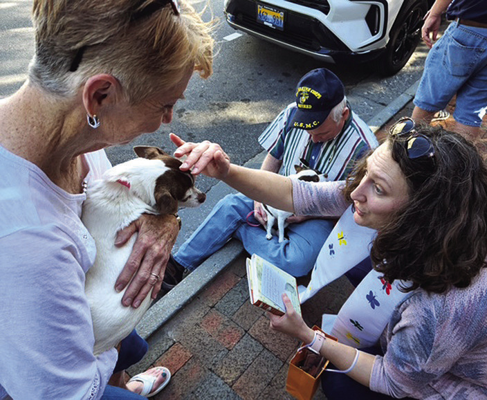 On Sunday, Trinity United Methodist Church welcomed pets of all sizes from the surrounding area for its third annual Blessing of the Animals. Trinity’s pastor, Anita Mays Lucord, performed the ceremony, which included three cats, four horses and an estimated 20 dogs. The four horses were brought over from the Lexington Carriage Company, one of which was in his first day on the job. Some participants brought photos of their animals that were unable to be transported to the event due to size or health reasons. Each animal was given an individual blessing and given a special medallion with the image of St. Francis, the patron saint of animals. (photos courtesy of Kenny Lucord and Rebekah Smith)