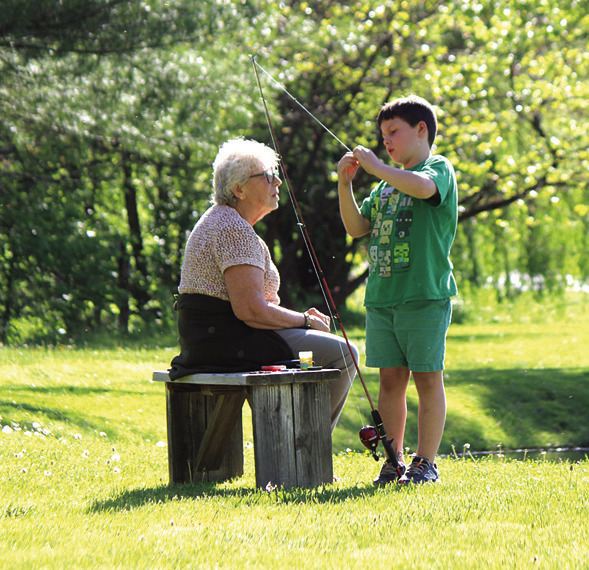 NATE REPAIR gets help from his grandmother Judy Repair while preparing to fish during the Stockman’s Club’s hands-on field trip to Ingleside Trout Farm. (Scotty Dransfield photo)