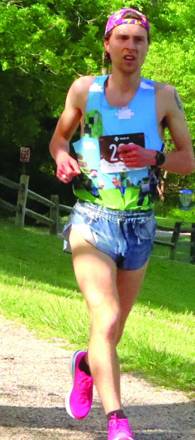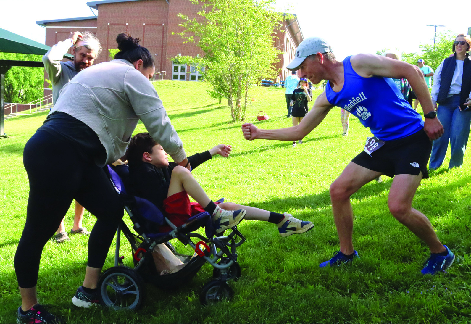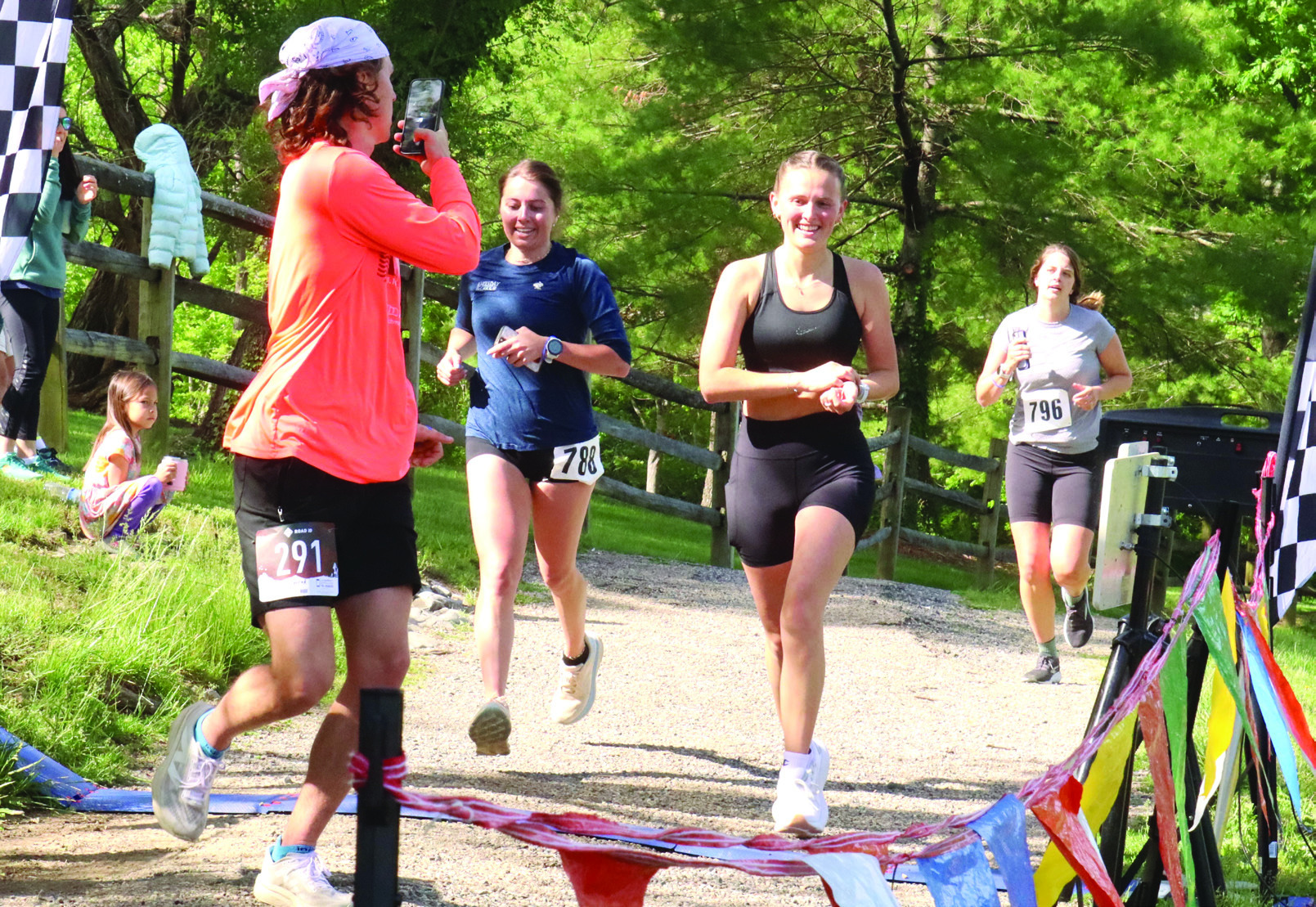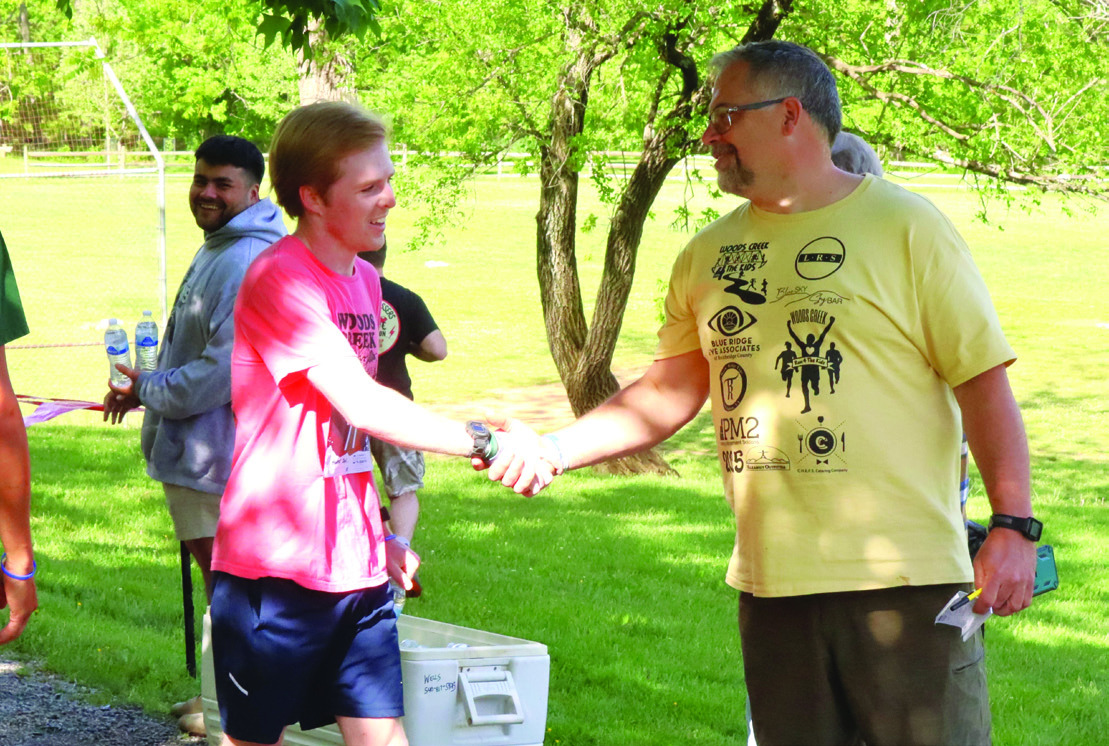 The seventh annual Woods Creek Run 4 the Kids benefit race drew 80 participants on Saturday morning, raising about $7,300 to cover intensive therapy costs for two local youths with cerebral palsy, 9-year-old Riven Welch and 15-year-old Alyssa Cornwell. Winning the moderately hilly 4-mile race was Austin Molitor (near right), 22, who finished in 24:47.89. The race was directed by David Wells (below, yellow shirt). Look for a story in next week’s newspaper. For full results, visit www.runroanoke. com. (Stephanie Mikels Blevins photos)
