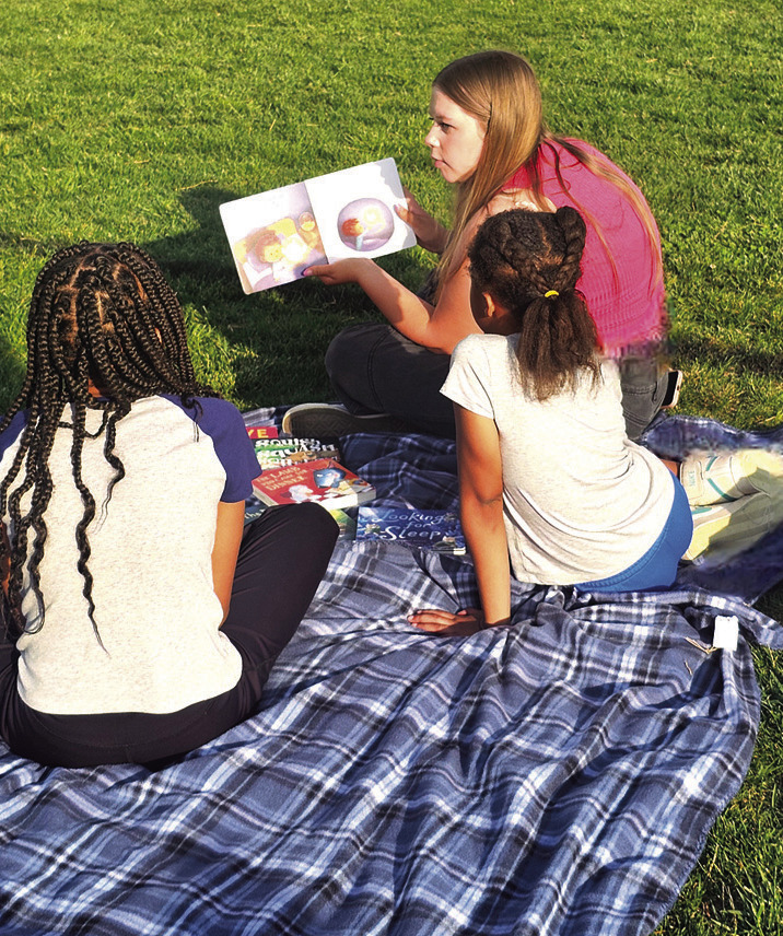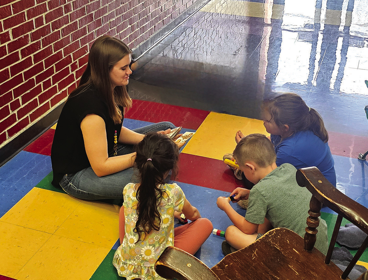 SADIE MOORE works with kindergarten students at Mountain View Elementary School as part of her field experience in the Virginia Teachers for Tomorrow program.