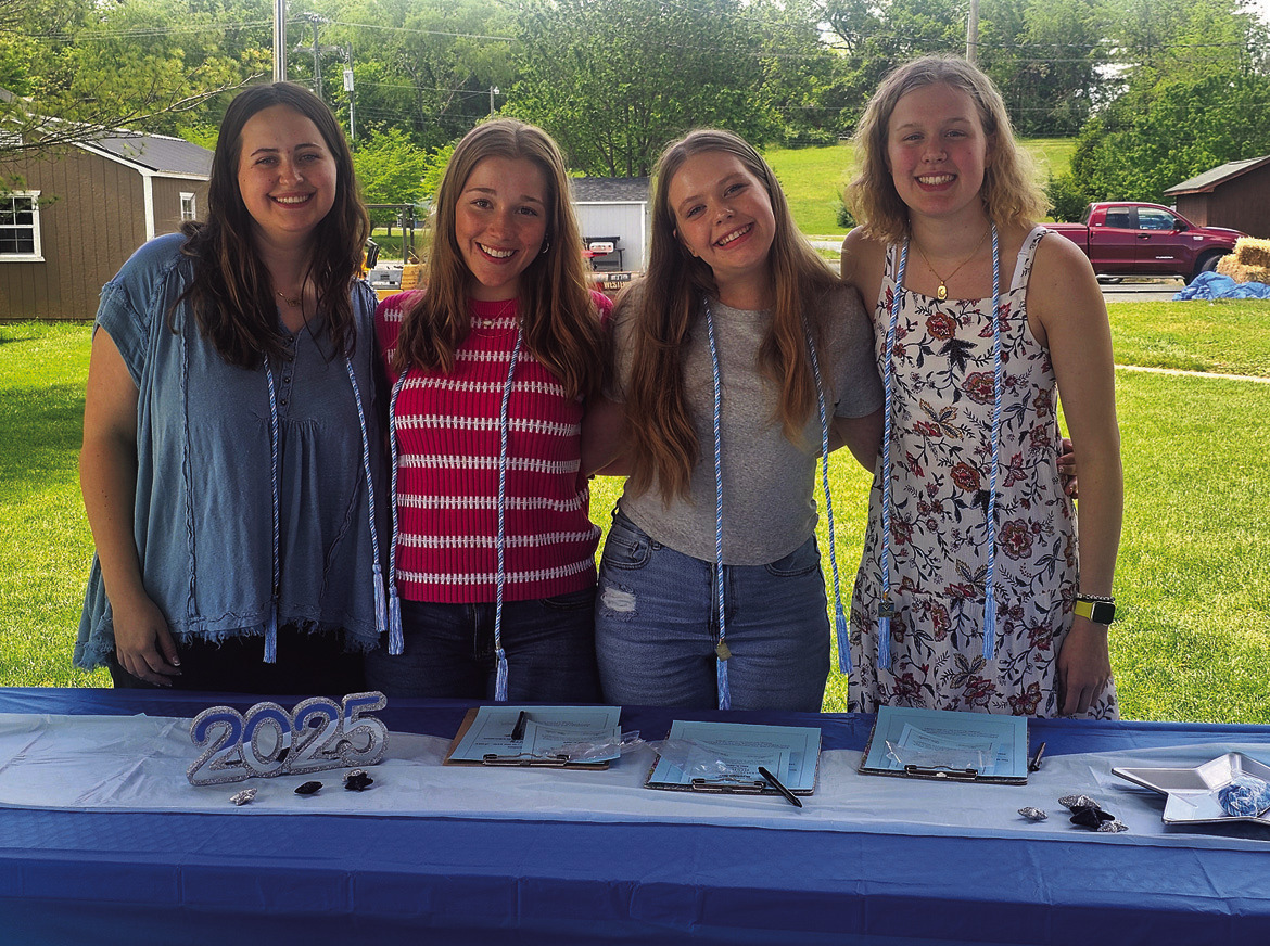 THE FOUR SENIOR members of Educators Rising don their cords for graduation: Kaylee Hagenbuch, Cameron Terry, Brooklyn Kerr and Rio Bucy. The cords were presented at the signing ceremony