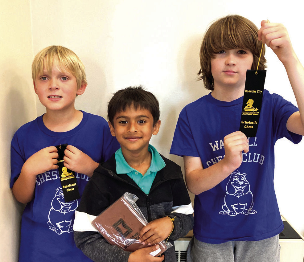 Three students from Waddell Elementary School, Graham Davis, Arham Hasan, and Henry Straub, played in the Beginners section of the tournament and finished in a three-way tie for first place, with three wins each (out of four rounds).