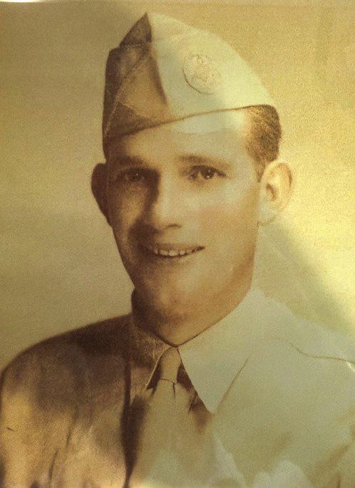 ABOVE is a young Tommy Langston, photographed before shipping out for service in World War II. He was killed in action in 1944. AT LEFT is an image from Jack Moran’s personal wartime archive, displaying medals and insignia from his time of service in World War II, including the Battle of the Bulge.