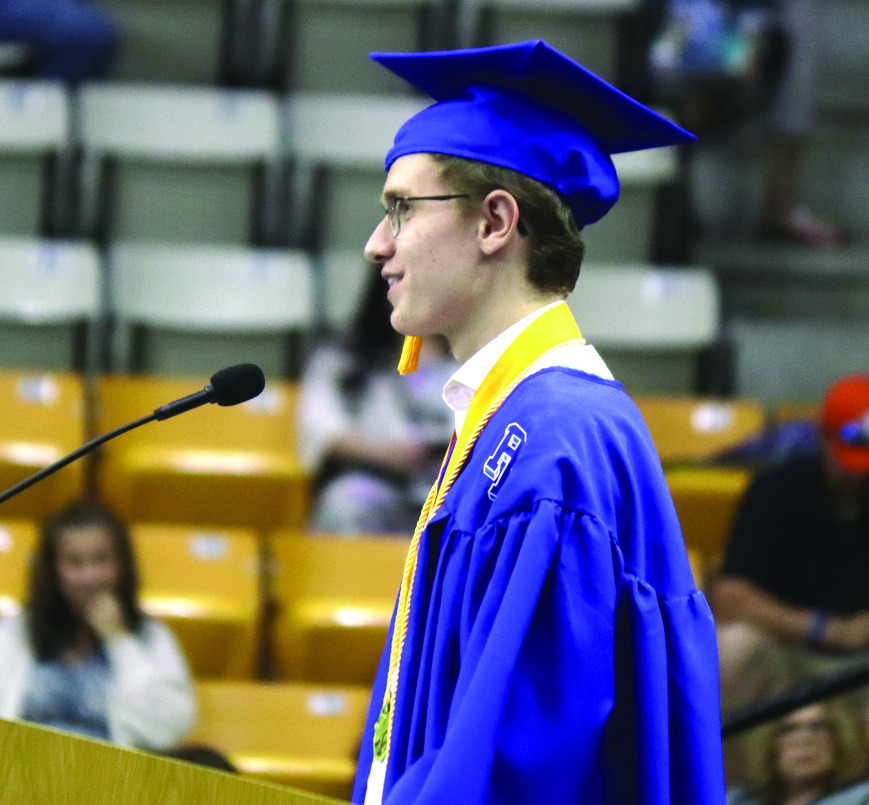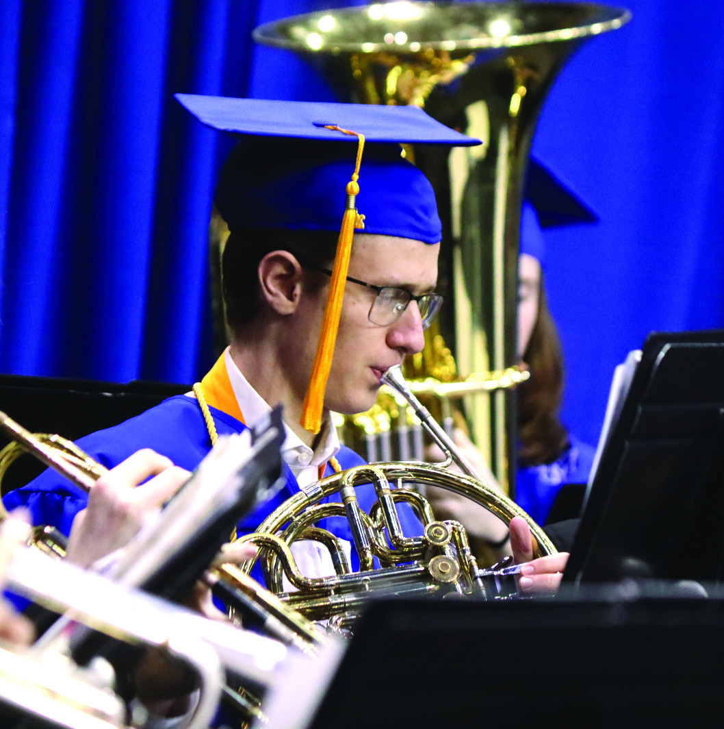 VALEDICTORIAN Nathan Lee not only spoke to his classmates Friday night but also performed (at right) in the school’s band.