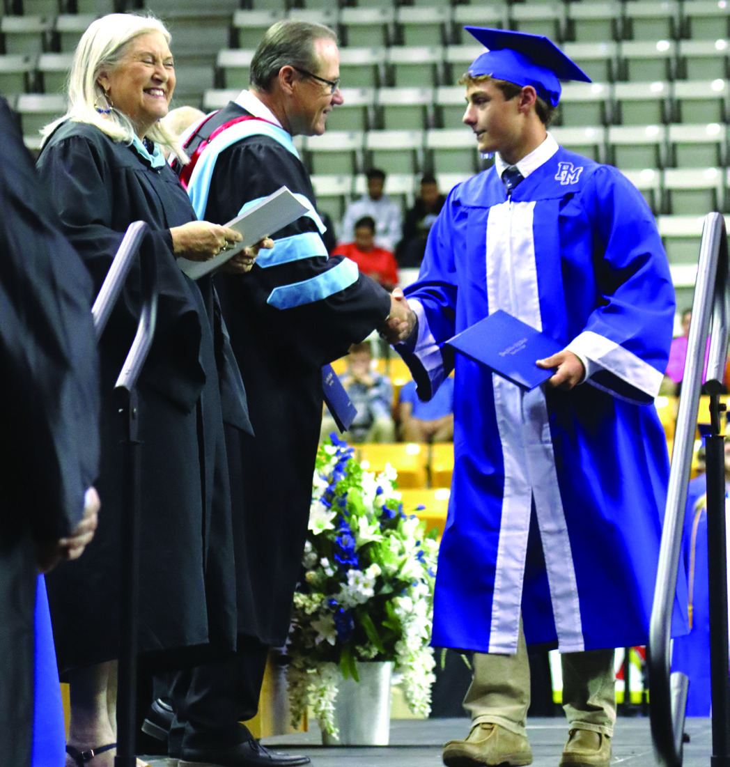 JACKSON BROCKENBROUGH receives congratulations from Superintendent Tony Francis. With them is School Board chair Teresa Ellison.