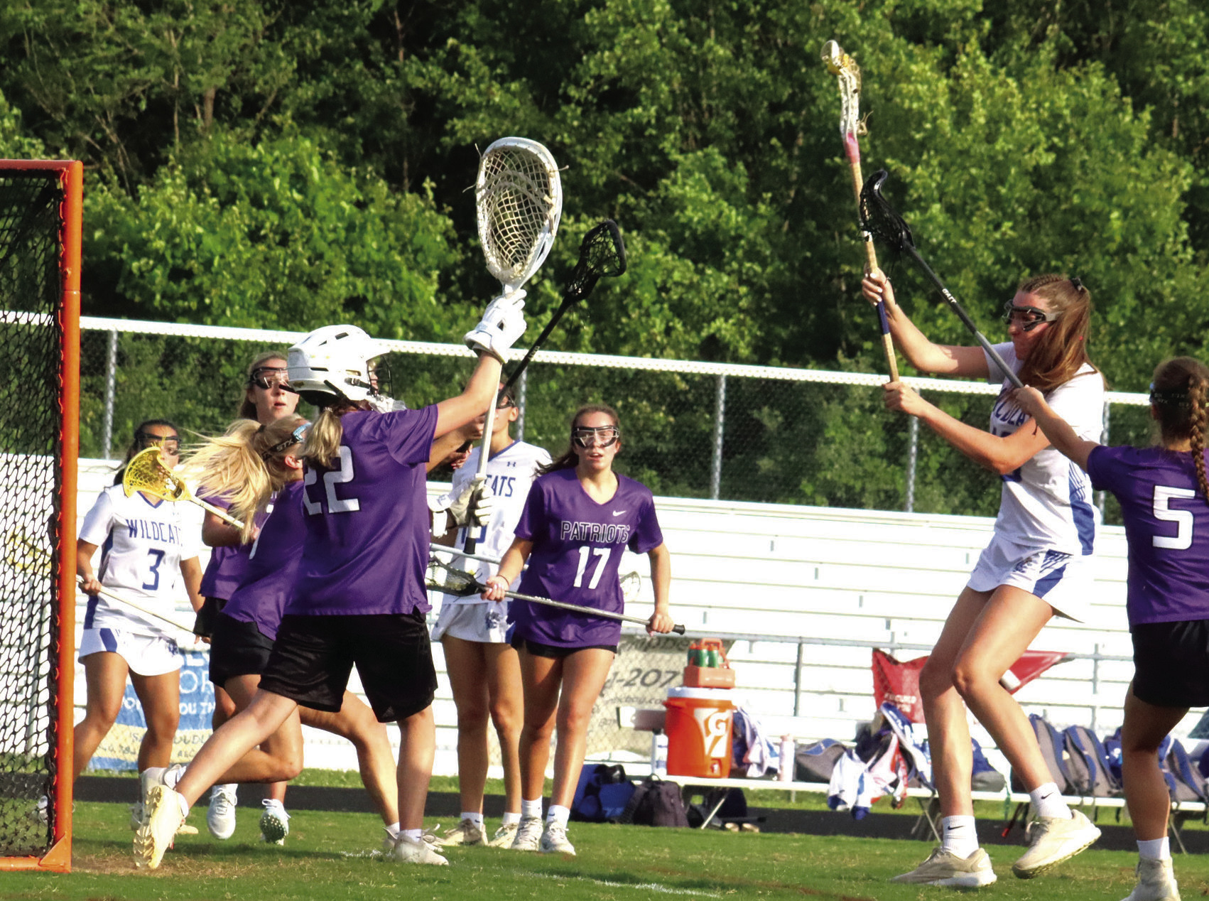 While the Wildcats would never surrender their advantage, they were also unable to shake the Patriots. After Mulitalo scored to make it 6-2 midway through the second frame, back-to-back goals from McCahill and Kahoun sliced the margin to 6-4; Josie Caldwell’s marker with 12 seconds left would send the ’Cats into halftime up 7-4.
