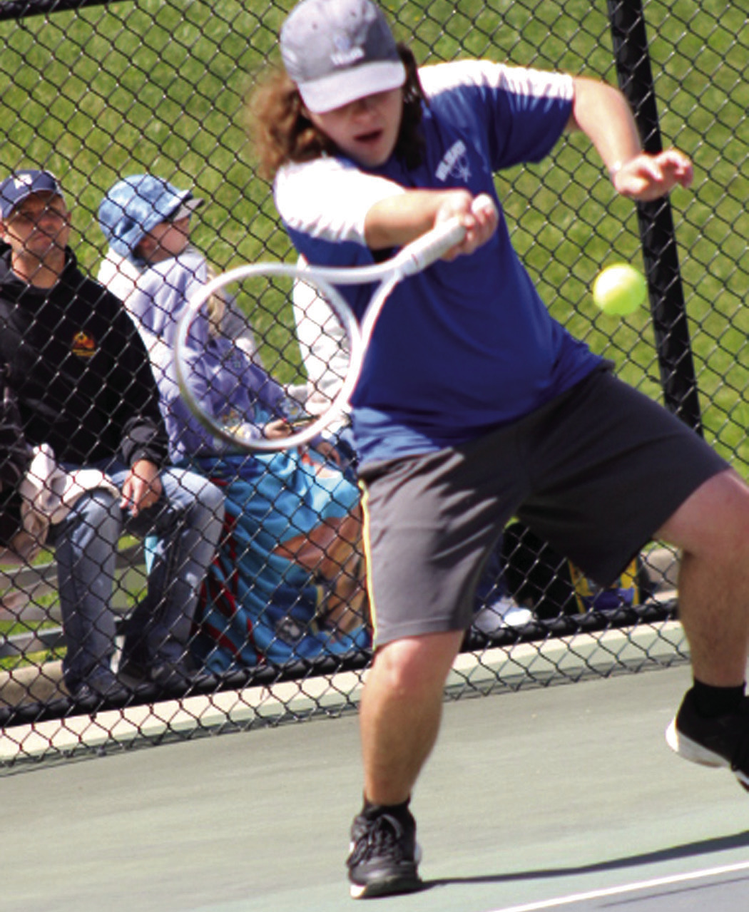 RC senior Nic Faulds goes for a forehand shot at No. 2 singles. (Photo by Ronnie Coffey)