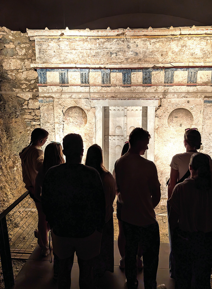 On their last day in Greece, the group traveled to Vergina to visit the tomb of King Philip II of Macedonia, father of Alexander the Great, then on to Thessaloniki, where they explored the Ottoman city walls and viewed the famous White Tower. They also learned about the Greek health care system and discussed Greece’s experience during the 2011 economic crisis.