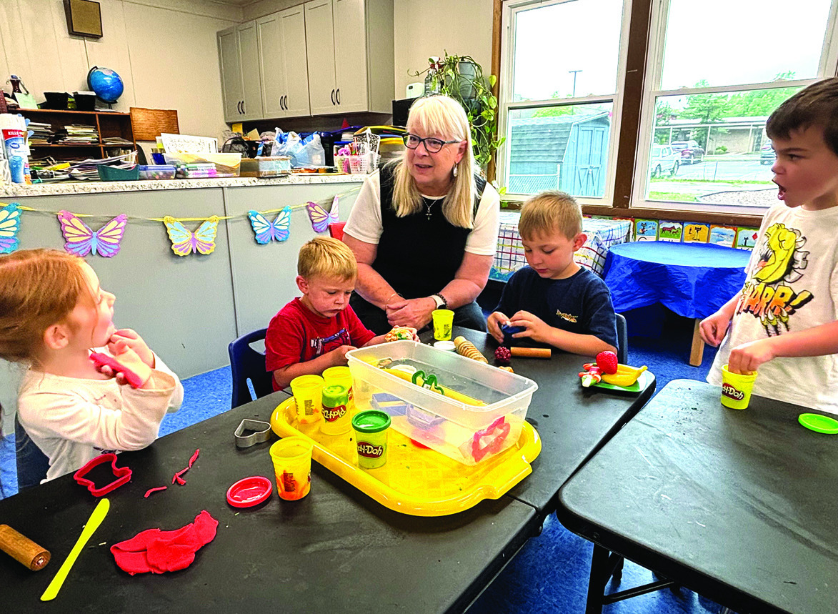 “We teach children their letters, numbers, colors,” explained director and teacher Edwina Shafer. “A lot of it is how to play with others. One of the first things we teach them is how to write their names. They color a picture and put their name on the back. They’ve learned some sign language. We try not to do the same thing every day.” She reads books to them that have illustrative pictures.