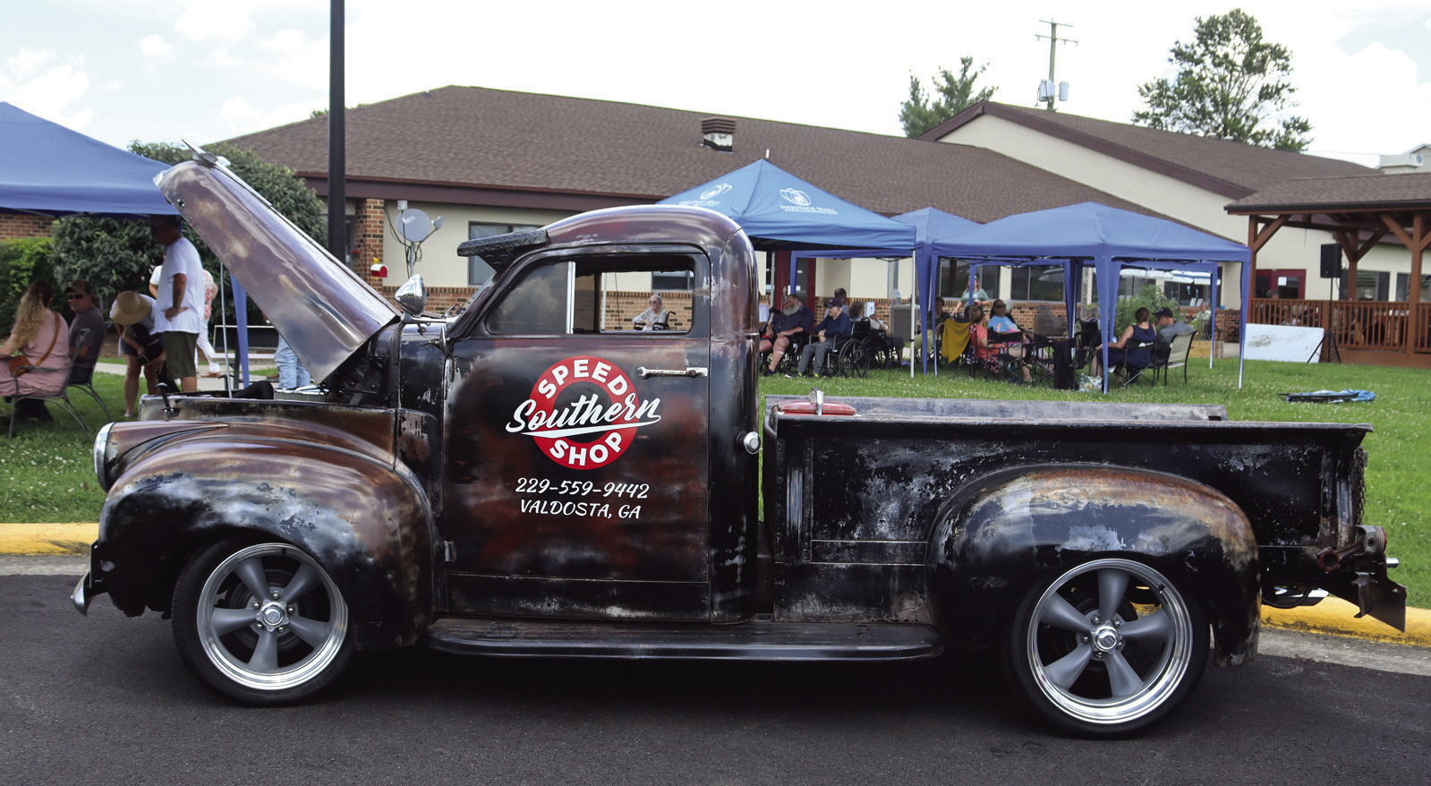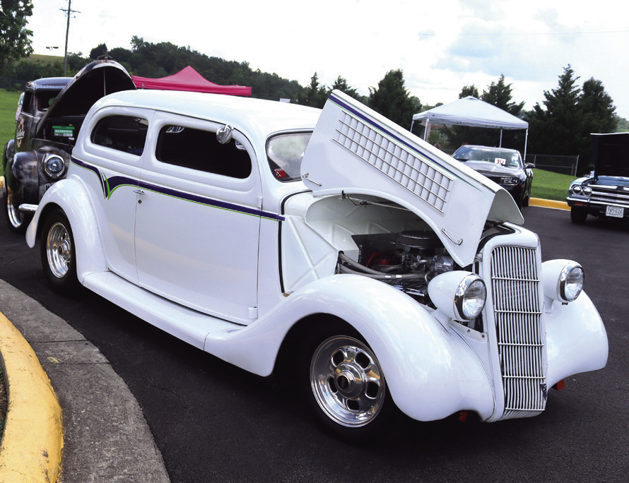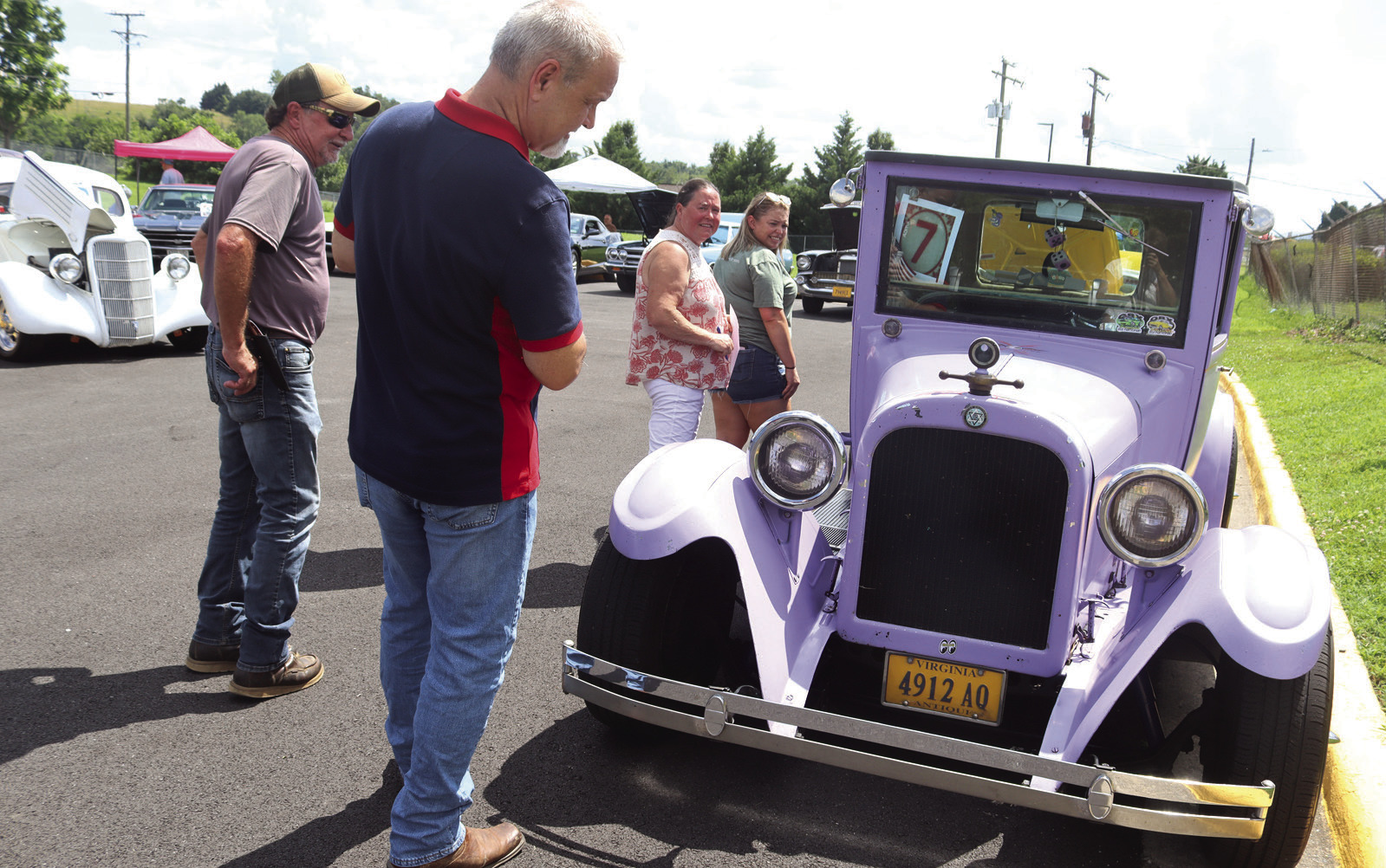 Antique vehicles were on display at a car show held Sunday, June 29, at Heritage Hall in Lexington. Blue Connection (far left) played bluegrass music at the show. Concessions were provided and trophies awarded to the top vehicles. Some of the judging can be seen in the photos at far left top and bottom. The show was a fundraiser for the residents’ aid fund. (Stephanie Mikels Blevins photos)