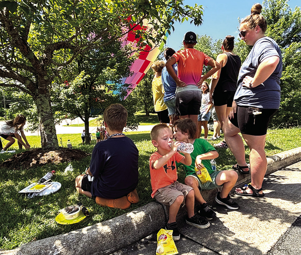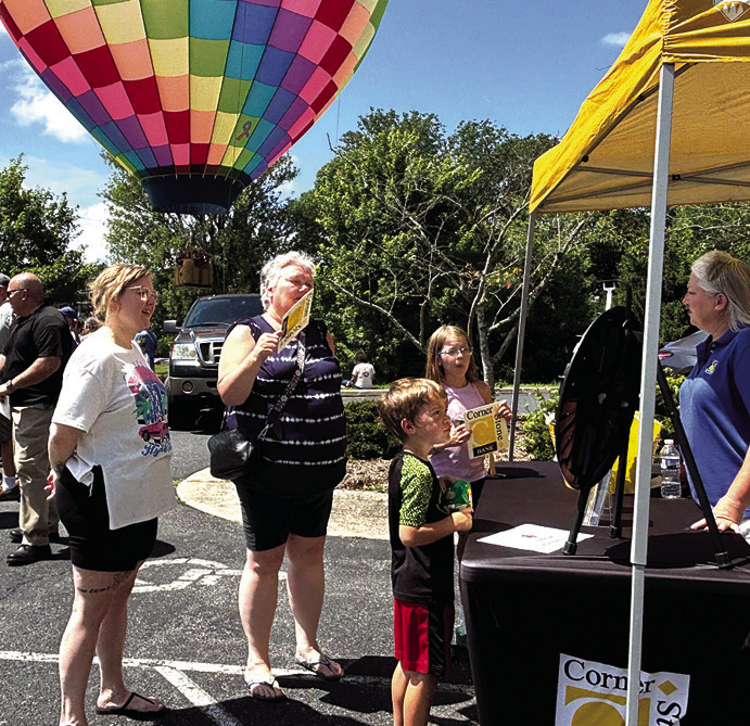 CornerStone Bank’s annual old-fashioned community hot dog picnic at its Lee Highway Branch last Wednesday featured not only food, games and give-aways but tethered rides in the “Neon Dreams” balloon piloted by Patrick Grogan of North Carolina. (Mary Woodson photos)