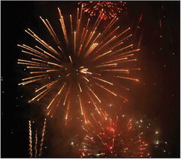 The Fourth of July weekend was once again a busy one in the Rockbridge area, with events stretching from last Wednesday’s community picnic offered by CornerStone Bank through Thursday’s Freedom Food Festival, to Friday’s children’s bike parade in Lexington and fireworks in Buena Vista, to the annual Balloons Over Rockbridge festival Friday and Saturday and Raphine Fire Department’s ice cream social and fireworks Saturday evening. AT LEFT, youths get into the spirit prior to the children’s bike parade. BELOW, a balloon rises into the sky Saturday evening. ABOVE, fireworks light up the sky over Glen Maury Park. (Stephanie Mikels Blevins photos)