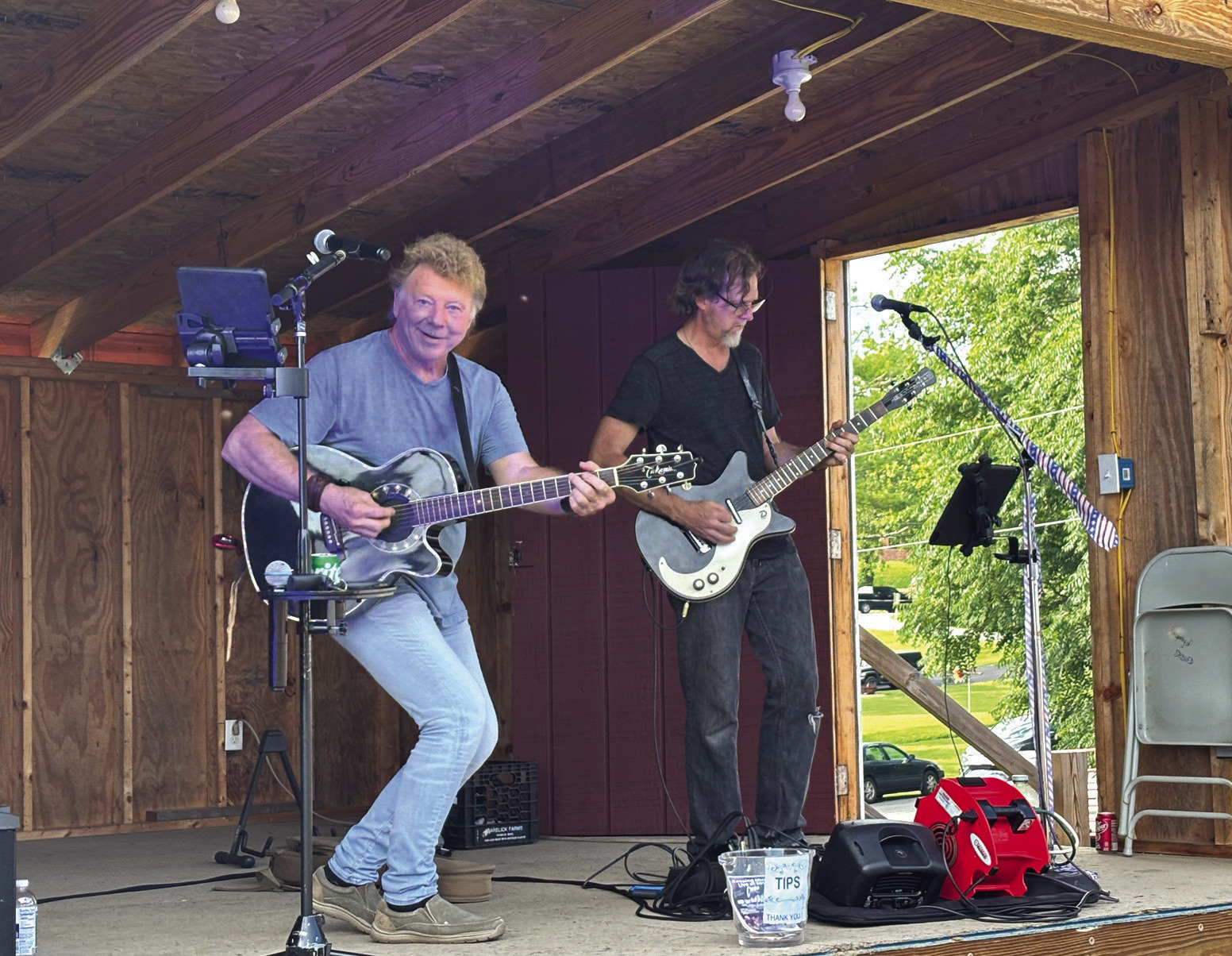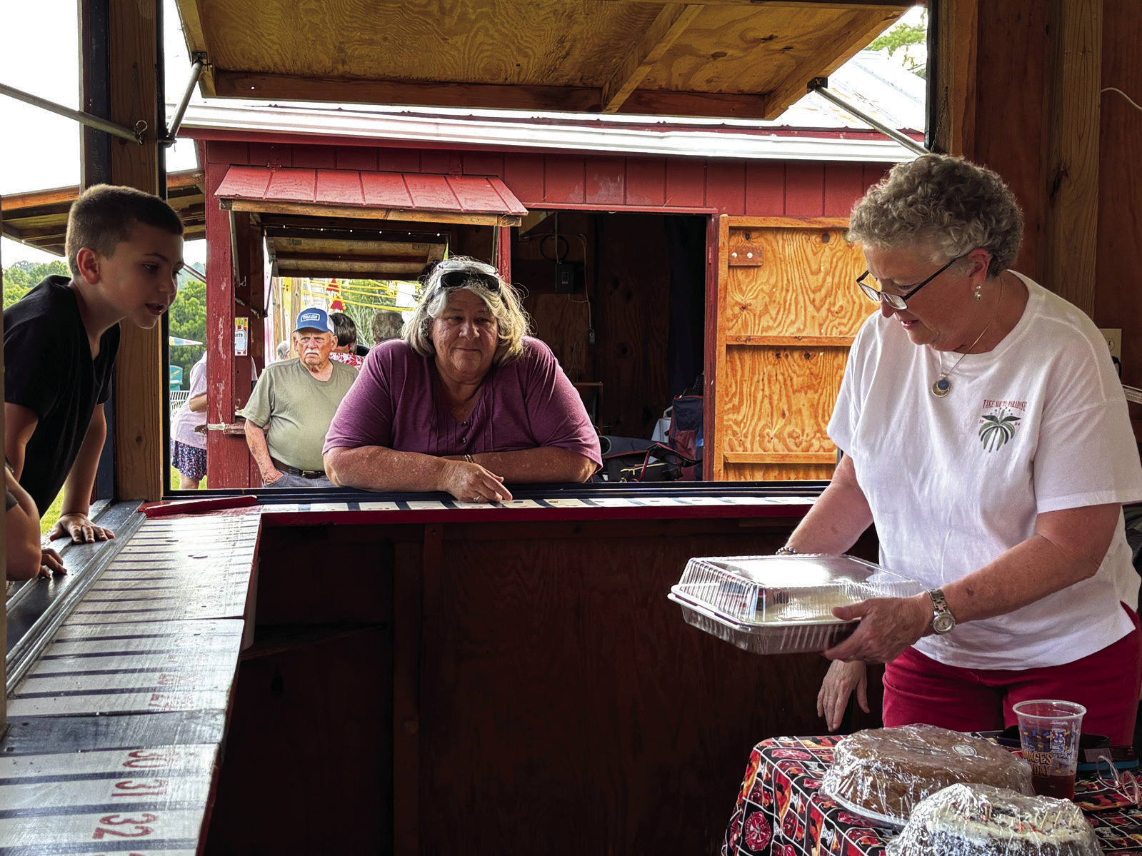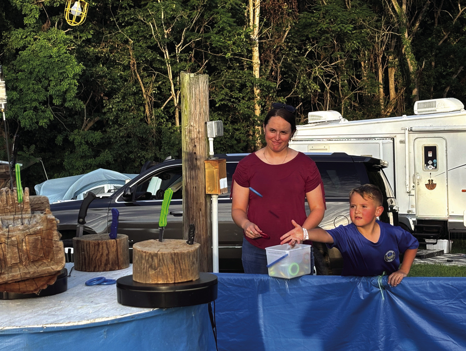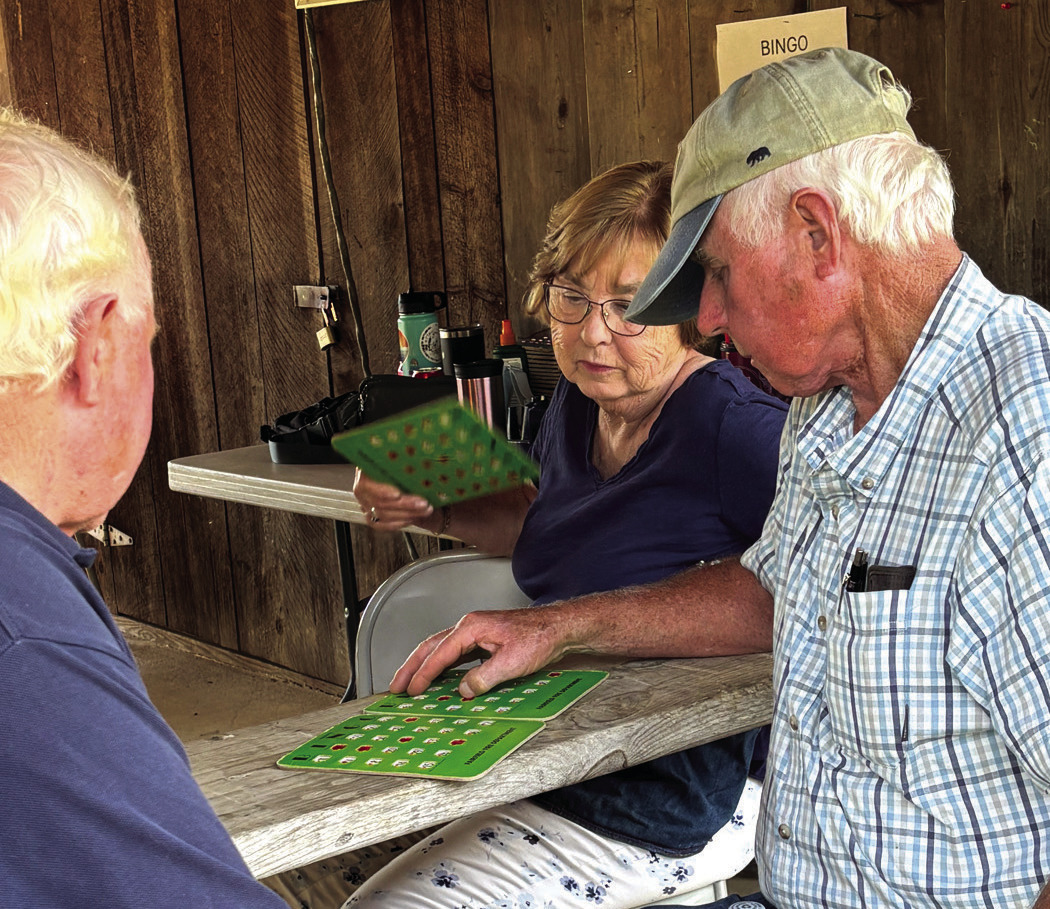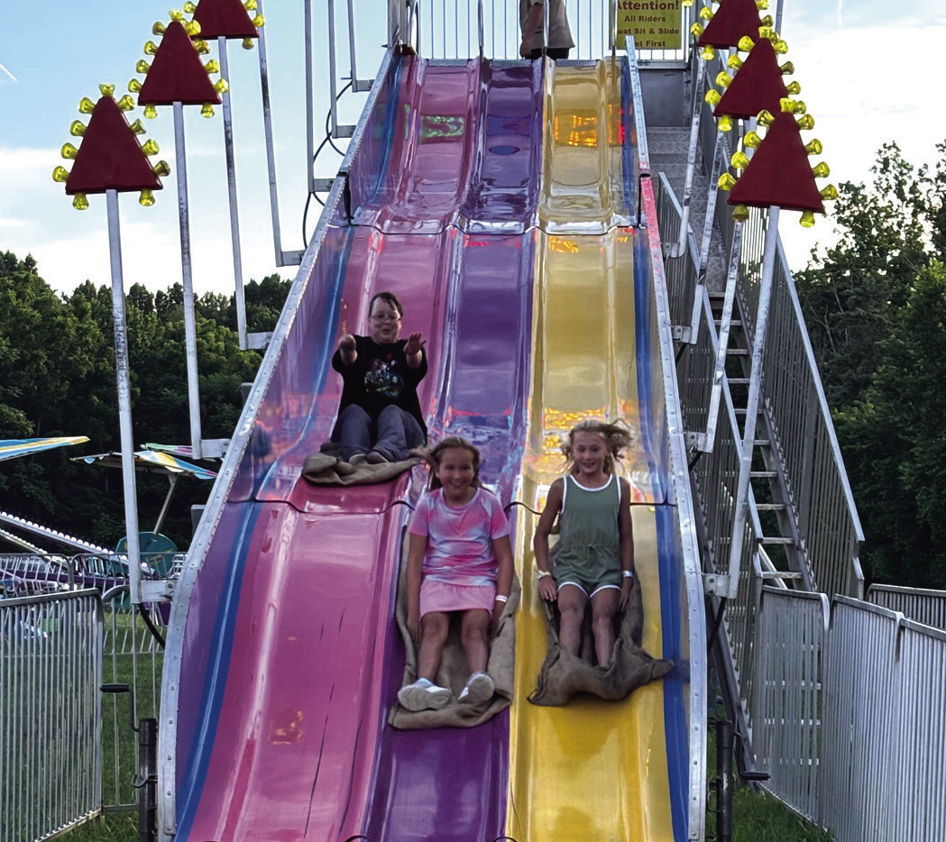 The South River Volunteer Fire Department’s annual carnival managed to avoid the rain last week, bringing area residents three nights of rides, games, music and food. Among the scenes on the opening night were (clockwise from top left) Harley Raye Groah shooting the cork gun at one of the game booths; Luken Ingram tossing for a knife prize; 7-year-old Julian Deaton, who had just won a cake, telling volunteer Robin Hartless which one he wants; Bruce Allen and Jason Burke performing; area residents enjoying bingo; and children heading down the slide. (Mary Woodson photos)