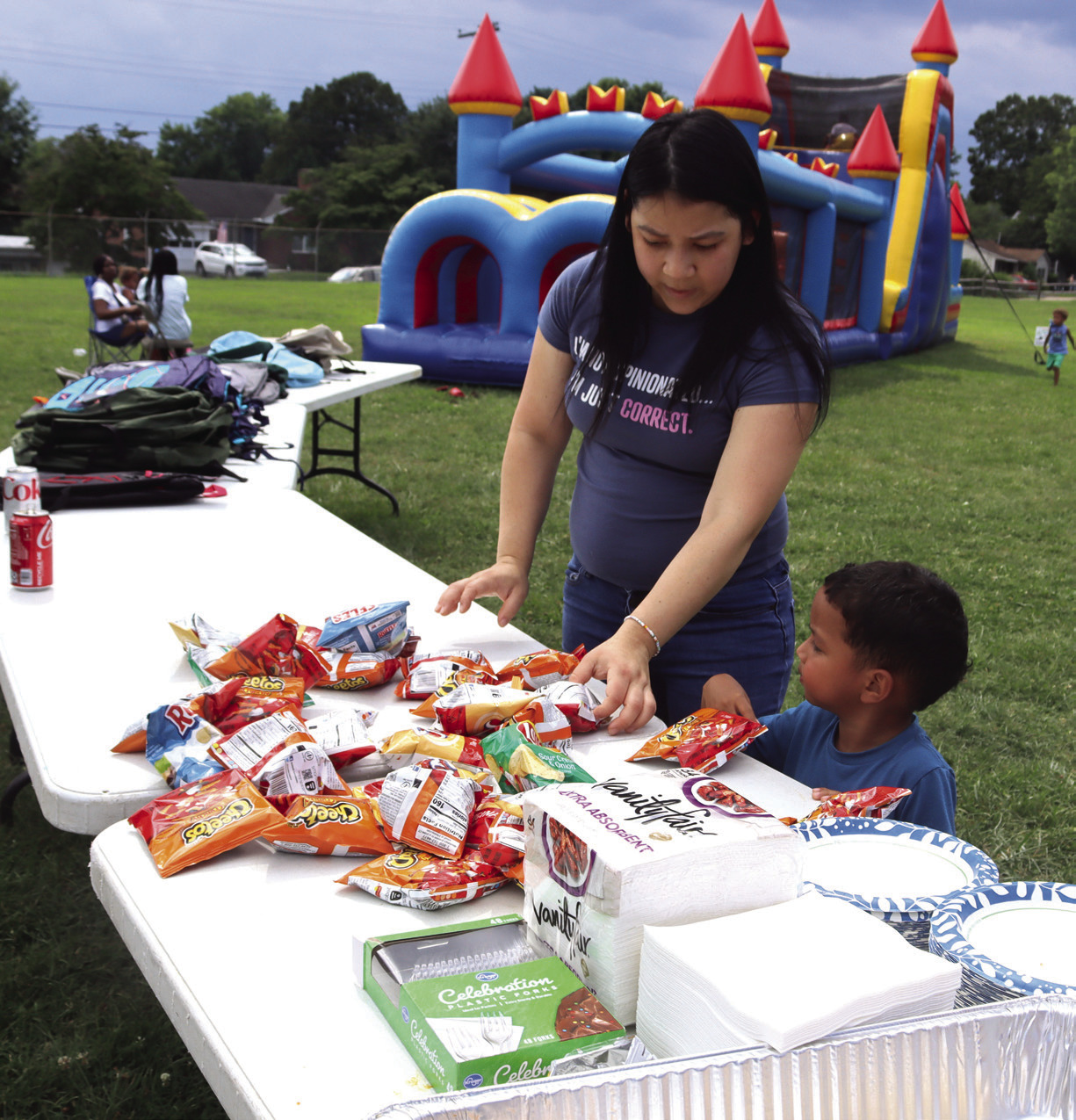 The Back to School Bash sponsored by the Lexington Police Department drew about 200 people to Brewbaker Field on Saturday afternoon. The department handed out over 130 backpacks filled with school supplies and hygiene kits, and the children enjoyed a bounce house and free hamburgers and hot dogs. (Stephanie Mikels Blevins photos)