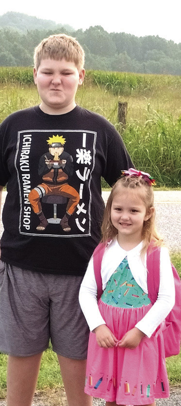 Michael Rhodenizer, a sixthgrader at Maury River Middle School, and his sister Harper, in preschool at Mountain View Elementary, get ready for the first day of school.