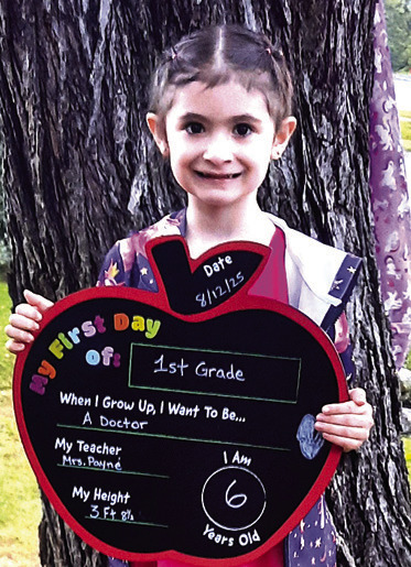 Aubrey Sprouse is ready for her first day of school as a first-grader at Fairfield Elementary.