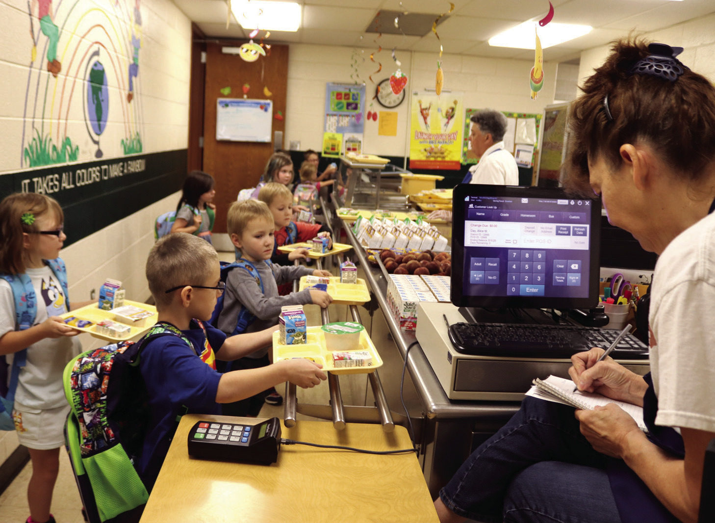 KLING Elementary students go through the breakfast line in the cafeteria on the first day of school last Wednesday. (Stephanie Mikels Blevins photo)