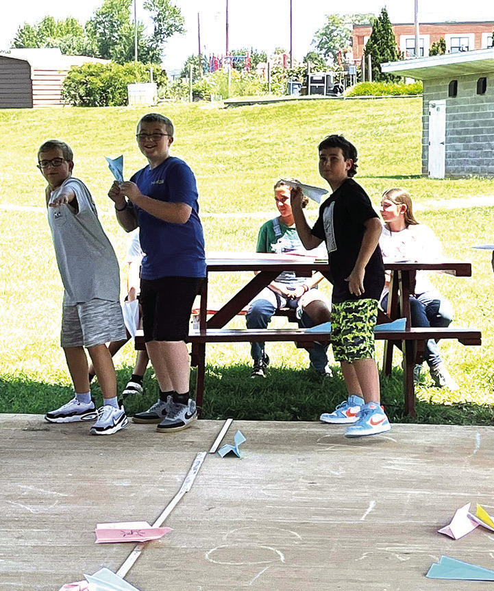 ON THEIR FIRST day of school last Tuesday, Natural Bridge Elementary fifth-graders used different types of paper to make airplanes and then measured flight distances to see which made the better airplane.