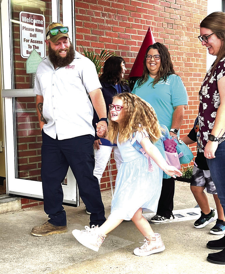 THIS NATURAL BRIDGE Elementary School student shows her excitement as she heads into school last Tuesday. (photo courtesy of NBES)