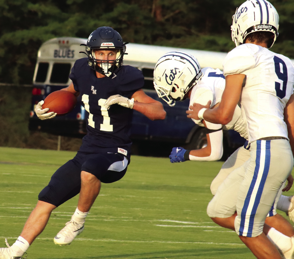 Receiving the opening kickoff to start the third quarter, the Blues drove all the way to the Rockbridge County 28-yard line. But on first down from there, PM fumbled the snap and was called for holding, forcing a punt.