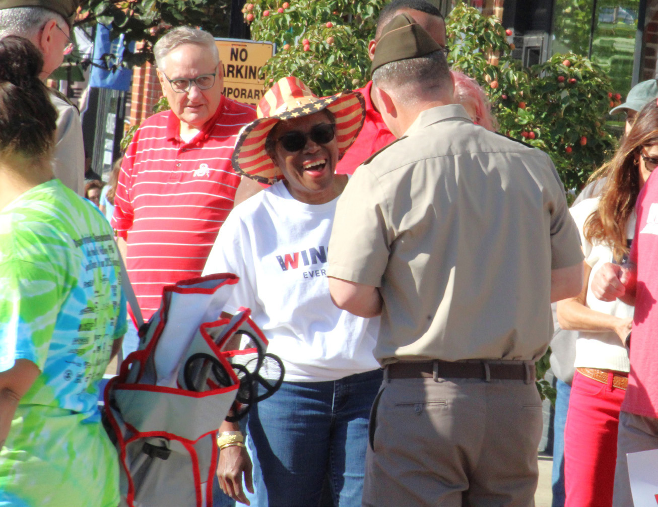 LT. GOV. WINSOME EARLE-SEARS, Republican nominee for governor, greets spectators along Magnolia Avenue during the Labor Day parade. (Stephanie Mikels Blevins photo)