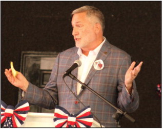 JOHN REID, Republican candidate for lieutenant governor, gestures as he addresses the Labor Day crowd.