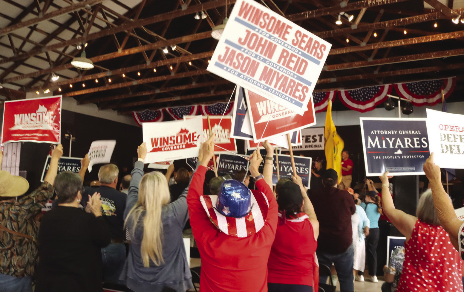 Monday’s speeches represented the first time that the two major party candidates for governor – Re- publican Lt. Gov. Winsome Earle-Sears and Democratic former U.S. Rep. Abigail Spanberger – have shared a stage. It was likely the only time that all six major party statewide candidates will appear together at the same event.