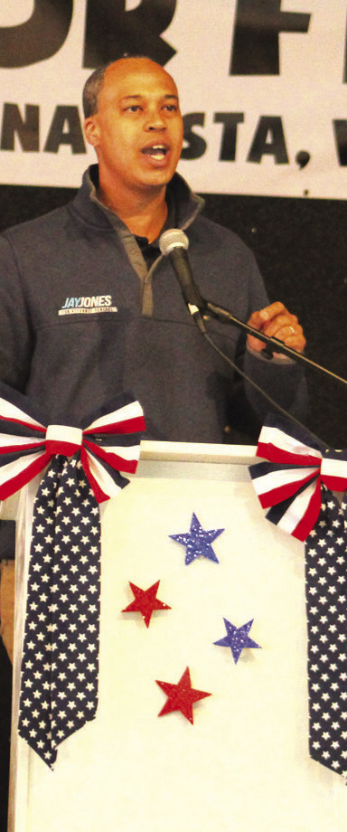 JAY JONES, Democratic candidate for attorney general, speaks at the park, as does his Republican opponent, incumbent Attorney Gen. Jason Miyares.