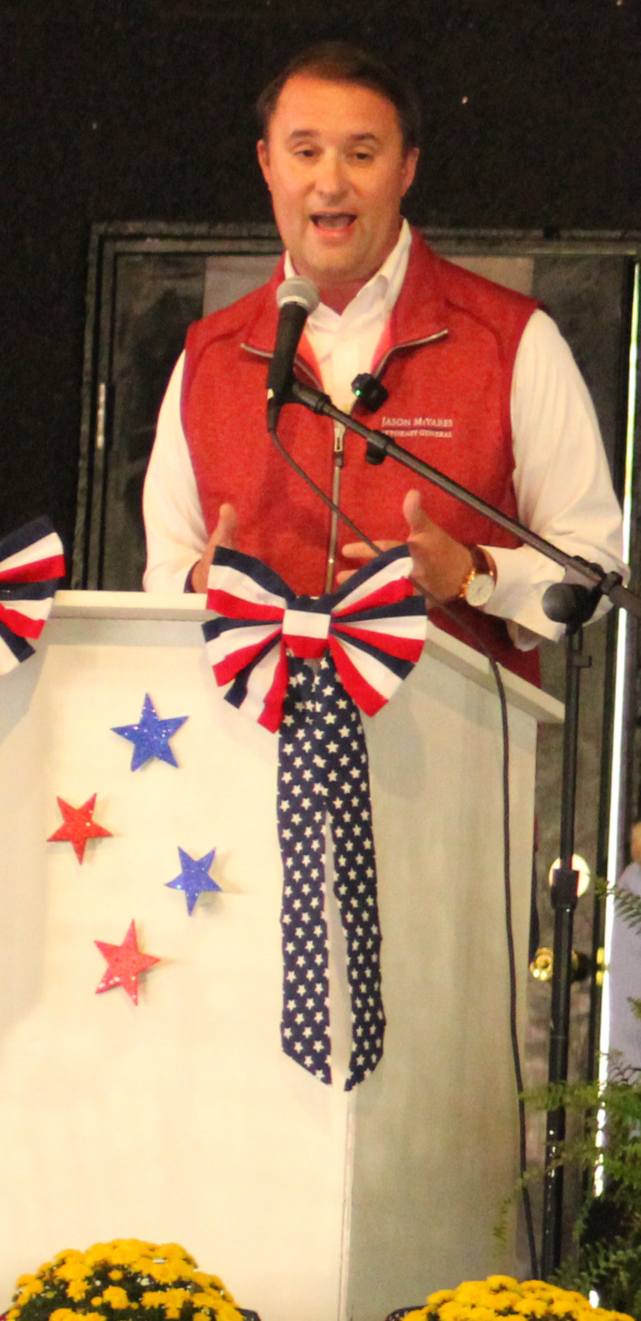 Republican Attorney Gen. Jason Miyares, running for re-election, asserted that “Virginia was literally a state that was dying” when he entered office four years ago because more people were moving out of the state than into it. He credited himself and the other state GOP leaders elected in 2021 with reversing this trend. “When I took over as attorney general of Virginia,” he continued, “the murder rate was at a 20-year high. Violent crime was at a 30-year high. Our addiction death rate in Virginia was the highest we’d ever seen in our history.” Substantial progress has been made in all three categories, he claimed, especially a precipitous decline in addiction deaths that he said was the greatest drop in the nation.