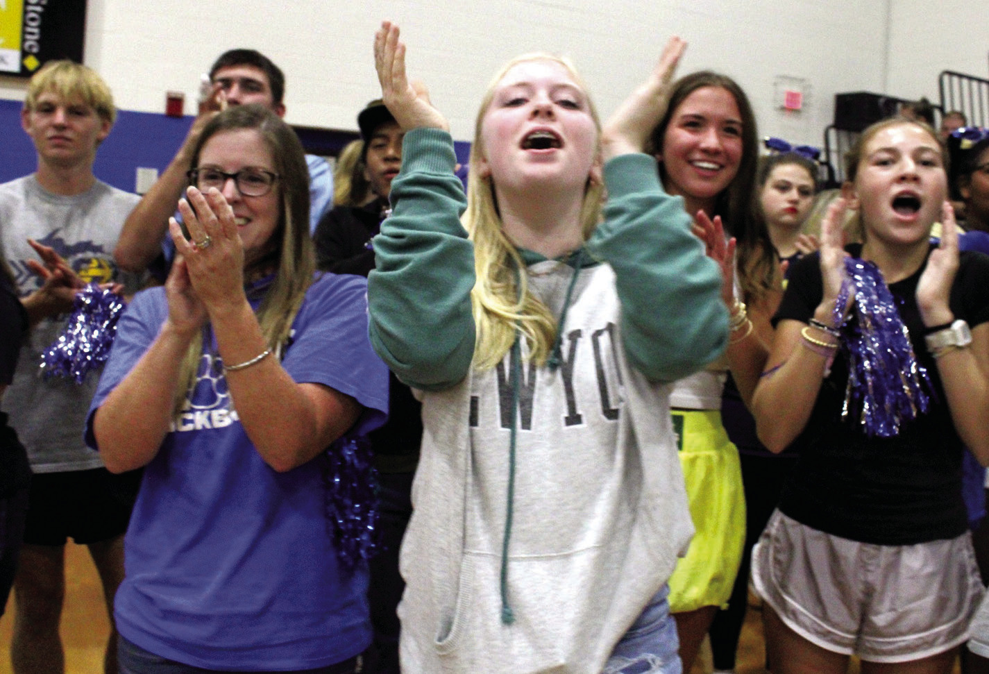 Cheering for the Wildcats, under the direction of Bryan and assistant coach Sarah Parnell, are seniors Lillian Ballard, Gabriella Brown, Riley McDaniel, Emma Mines and Willow Rogers; juniors Makenna Brinkley, Maria Calomeris and Celia Jones; sophomores Sofia Gaydos, Emmalee Grimm, Ariana Mitchell, Natasha Shorter and Chloe Zollman; and freshman Alaina Early and Josellyn Fitz.