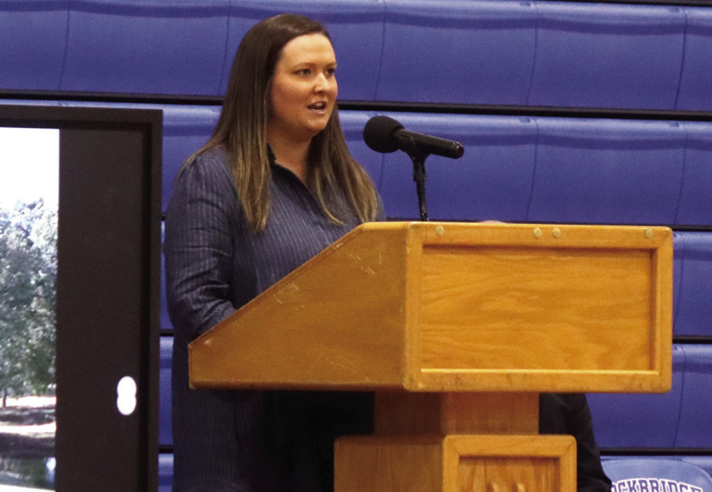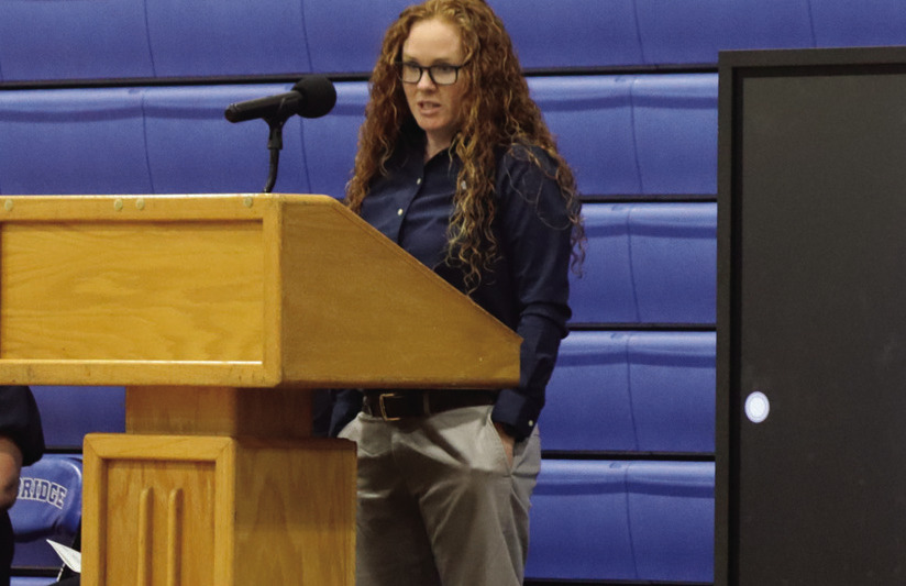 MALLORY SANDRIDGE, who was inducted as a softball player, tells the audience what the honor means to her. (Stephanie Mikels Blevins photo)