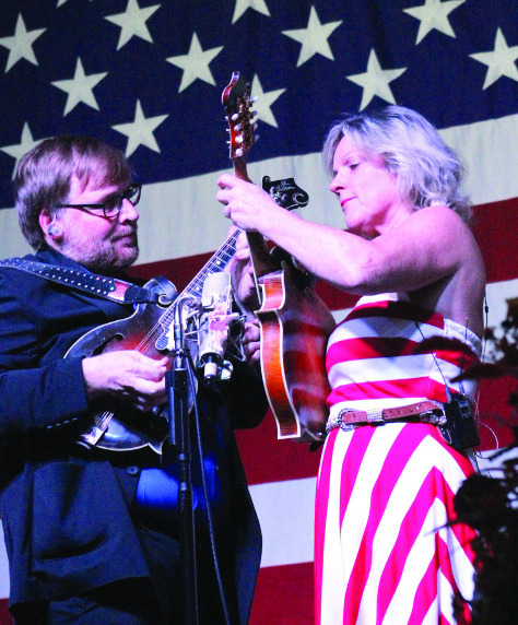 Bluegrass singer and musician Rhonda Vincent and a band member perform during the 23rd annual Nothin’ Fancy Bluegrass Festival at Glen Maury Park last Thursday. She was one of the many bluegrass stars on stage last week during the festival, which drew its largest crowd ever. For more photos from the event, see page B3. (Ronnie Coffey photo)