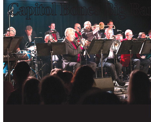 Founded in 1990 by trombonist Dr. Matt Niess, The Capitol Bones are acclaimed for their bold sound and unique instrumentation. While modeled after a traditional jazz big band, the group sets itself apart with a mellophone section — four mellophones in place of saxophones — creating a distinctive timbre that blends the brilliance of trumpets with the warmth of trombones.