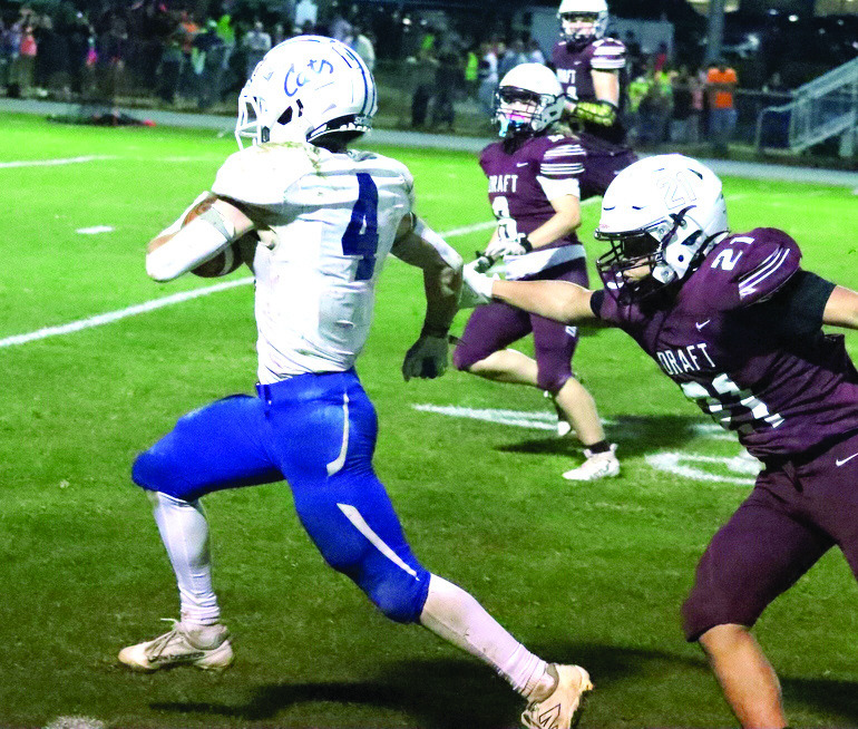 Draft, which has won its last four games, wasted no time in its homecoming game, scoring on a 52-yard run by Graber to take a 6-0 lead just 44 seconds into the game. The PAT kick failed. The Wildcats, who didn’t earn a first down until early in the second half, were stopped in their own territory on their initial possession.