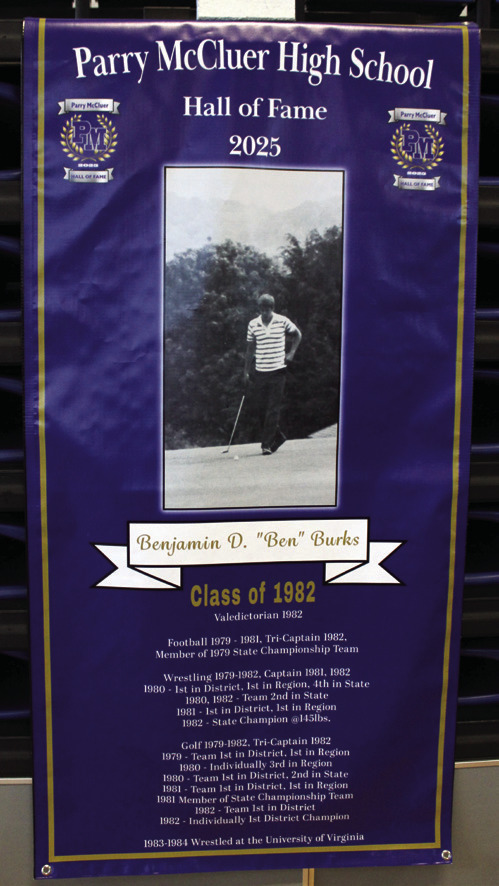 THE INDUCTEES’ accomplishments were on display on banners for attendees to view. (Stephanie Mikels Blevins photo) On the golf course, Burks was a member of the 1981 team that won the district, regional and state championships. As a senior in 1982, he was the individual district champion. During his sophomore year, Burks placed third in the region and helped the Blues win the district title and place second in the state.