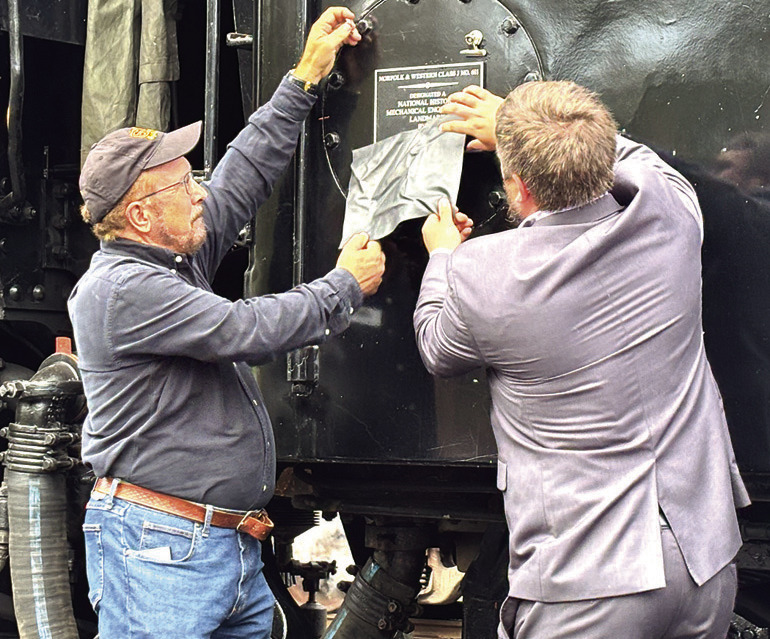Representatives of the Virginia Museum of Transportation, which owns the 611, and the American Society of Mechanical Engineering, rededicated the engine with the unveiling of a new plaque on the coal car that replaced a plaque from 1984.