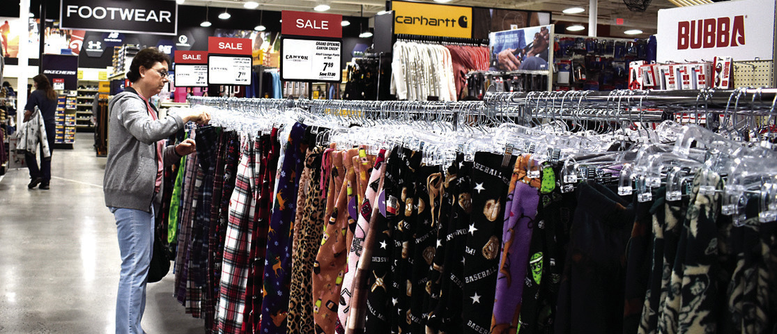 Dunham’s Sports had its grand opening in Lexington’s Stonewall Square Shopping Mall this past Friday, Oct. 3. Shoppers were offered donuts, coffee, orange juice and other assorted beverages served by store employees Betty Harris (in foreground) and Sheila Pooley. Dunham’s Sports offers a wide assortment of items from fire arms to footwear. (Joann Ware photos)