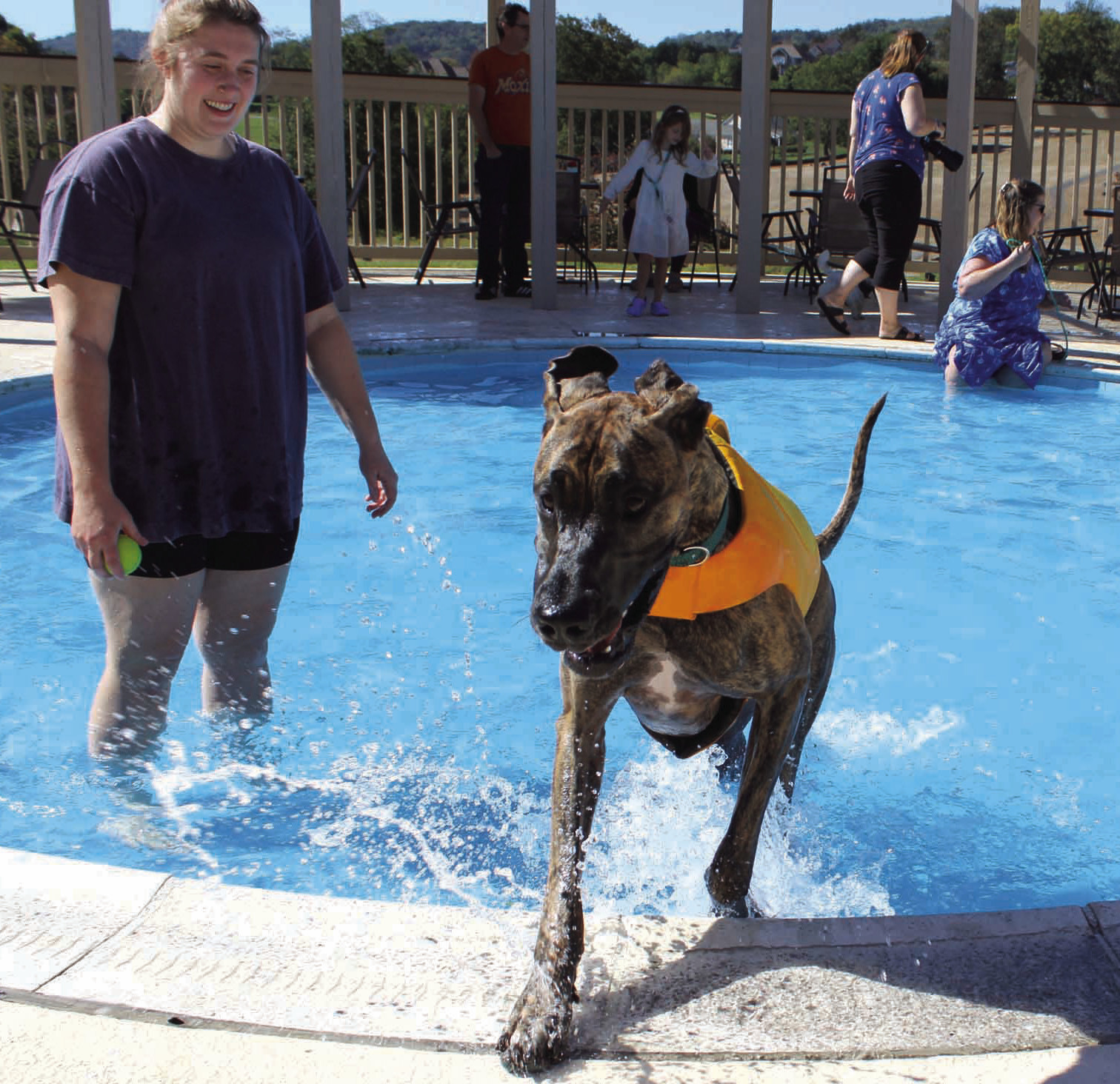 The first weekend of October saw two very different events in the Rockbridge area. On Saturday, the annual McCormick Farm Mill Day in Raphine signaled the start of a month filled with fall activities, while on Sunday, a Rockbridge SPCA Dog Swim at the Lexington Golf and Country Club marked the end of the summer swim season at the club. ABOVE, a youngster tries his hand at an old-fashioned corn husker at Mill Day. BELOW, a dog jumps out of the kiddie pool at the country club. (Joann Ware and Stephanie Mikels Blevins photos)