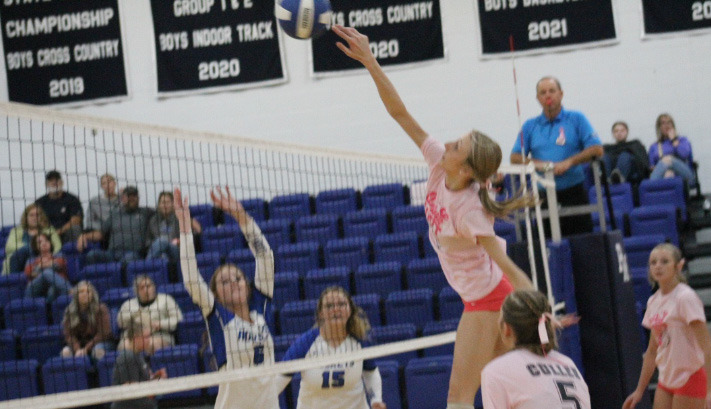 PM set up its run at a firstround home game in the tournament with a resounding 25-13, 25-19, 25-12 victory over Craig County (3-13 overall, 1-7 district) on Thursday to celebrate “Pink Out” for Breast Cancer Awareness Month and to complete the season sweep of the Rockets. When the teams met on Sept. 23 at Craig County, PM also won 3-0.