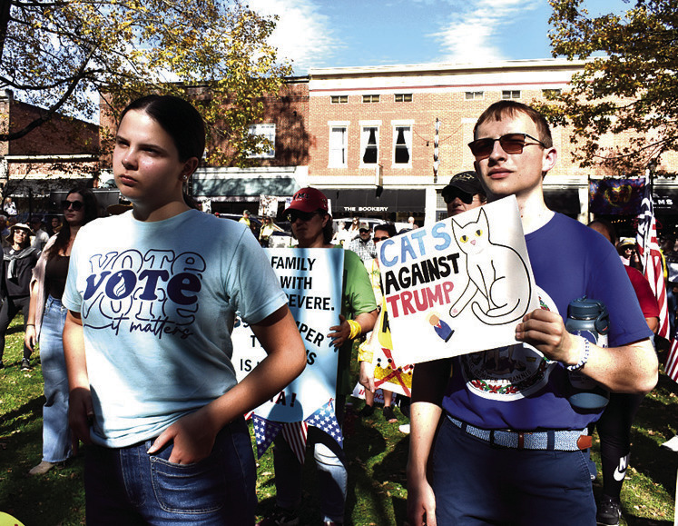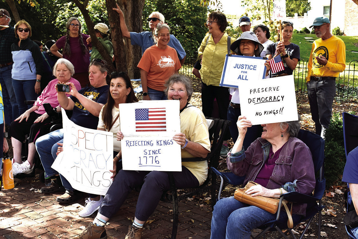 Like many cities and towns in the U.S. on Saturday, Lexington held at No Kings protest. Nearly 500 people turned out with their signs in a show of support for democracy. The procession began at Oak Grove Cemetery and ended at Hopkins Green. It is estimated that 7 million people nationwide took part in the protests. (Joann Ware photos)
