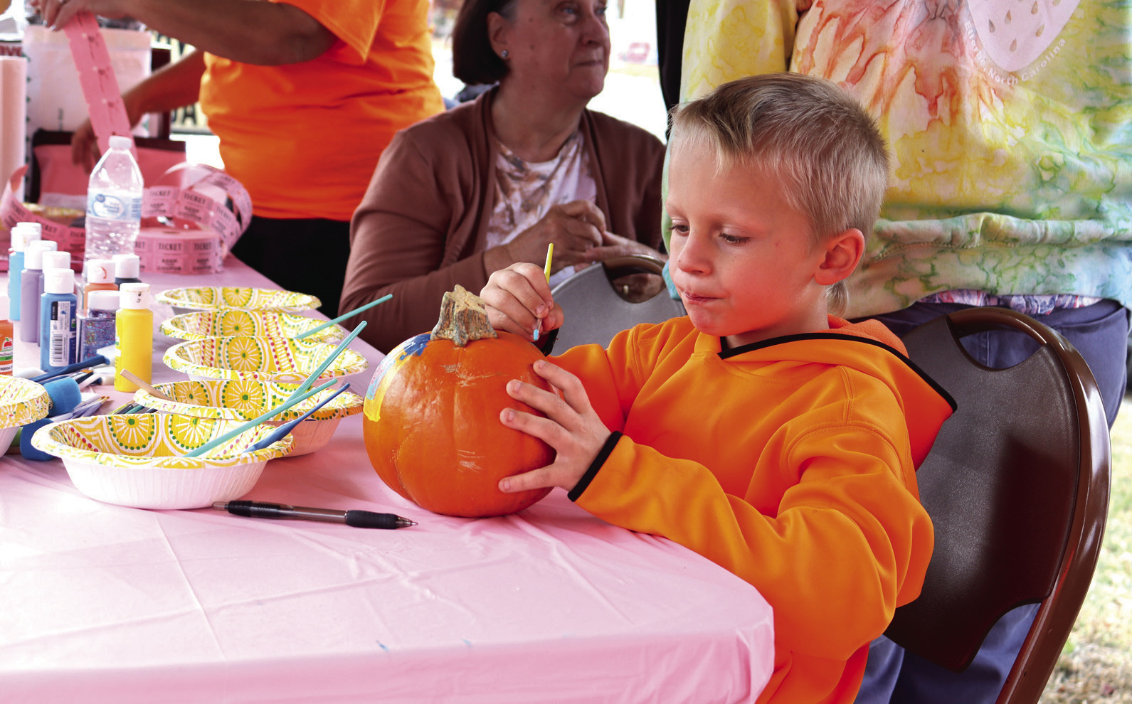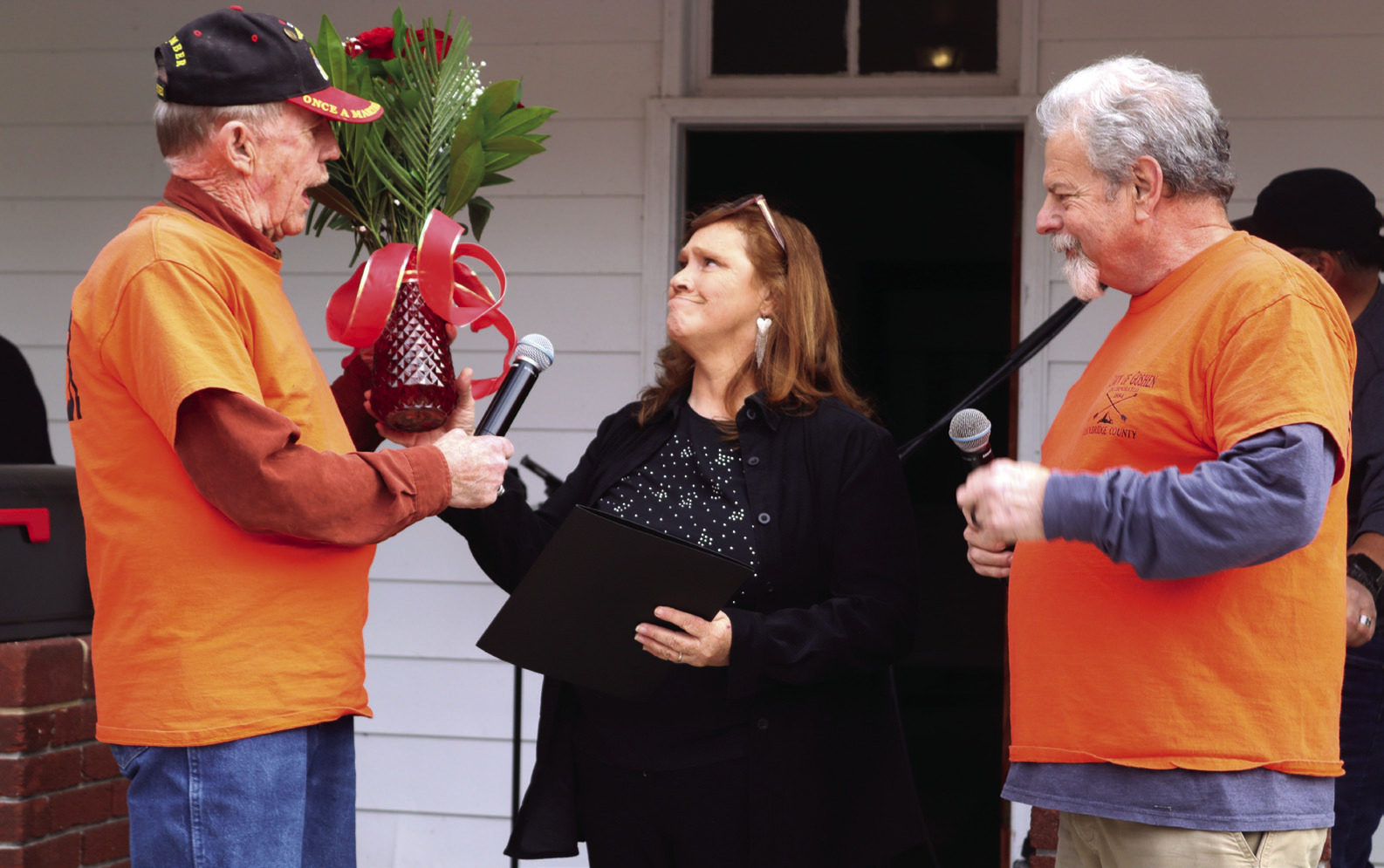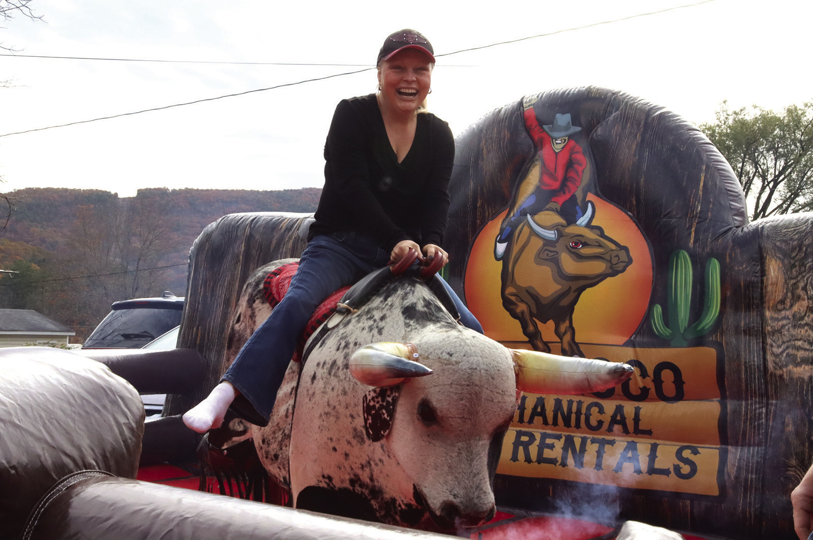 The town of Goshen held its annual fall festival on Saturday, featuring games, pumpkin decorating, a mechanical bull and music from Bruce Allen (below). In the middle of the festivities, the town honored Walkers Creek District Supervisor Jay Lewis (above) and Goshen resident Lisa Conner (bottom right). Lewis was presented with a key to the town in honor of his support of the town. Conner was honored for her volunteer efforts on behalf of the town, with helping organize the town’s events and in helping with the town’s community center project. (Stephanie Mikels Blevins photos)