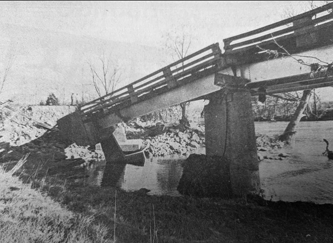 “The only way to get to this side of the river was to go to Lexington and to come back to town on Route 39,” he said. wo weeks after the flood, a temporary palette bridge was built by the Army Corps of Engineers to allow easier access to the village for those on the opposite side of the river until a new bridge could be built.