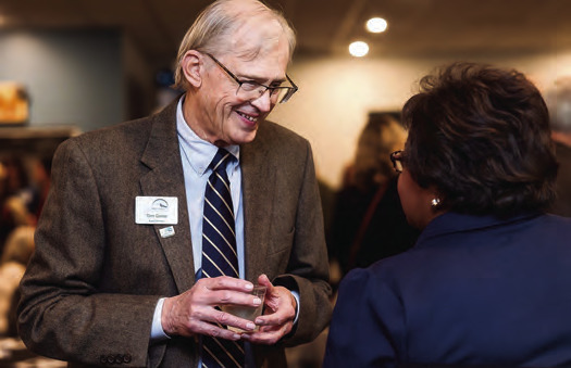 THOMAS GOSSE and Ingrid Barber chat at the Community Foundation for Rockbridge, Bath and Alleghany’s annual reception.