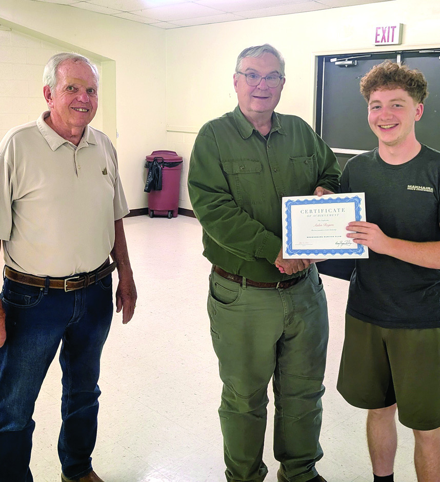 The Brownsburg Ruritan Club presented $1,000 scholarships to two students this year. ABOVE, Addisyn Clark is congratulated by President Dan Williamson. Addisyn is attending Mountain Gateway this fall. BELOW, Aiden Rogers is shown with John Conlon and Williamson. Aiden is attending James Madison University this fall.