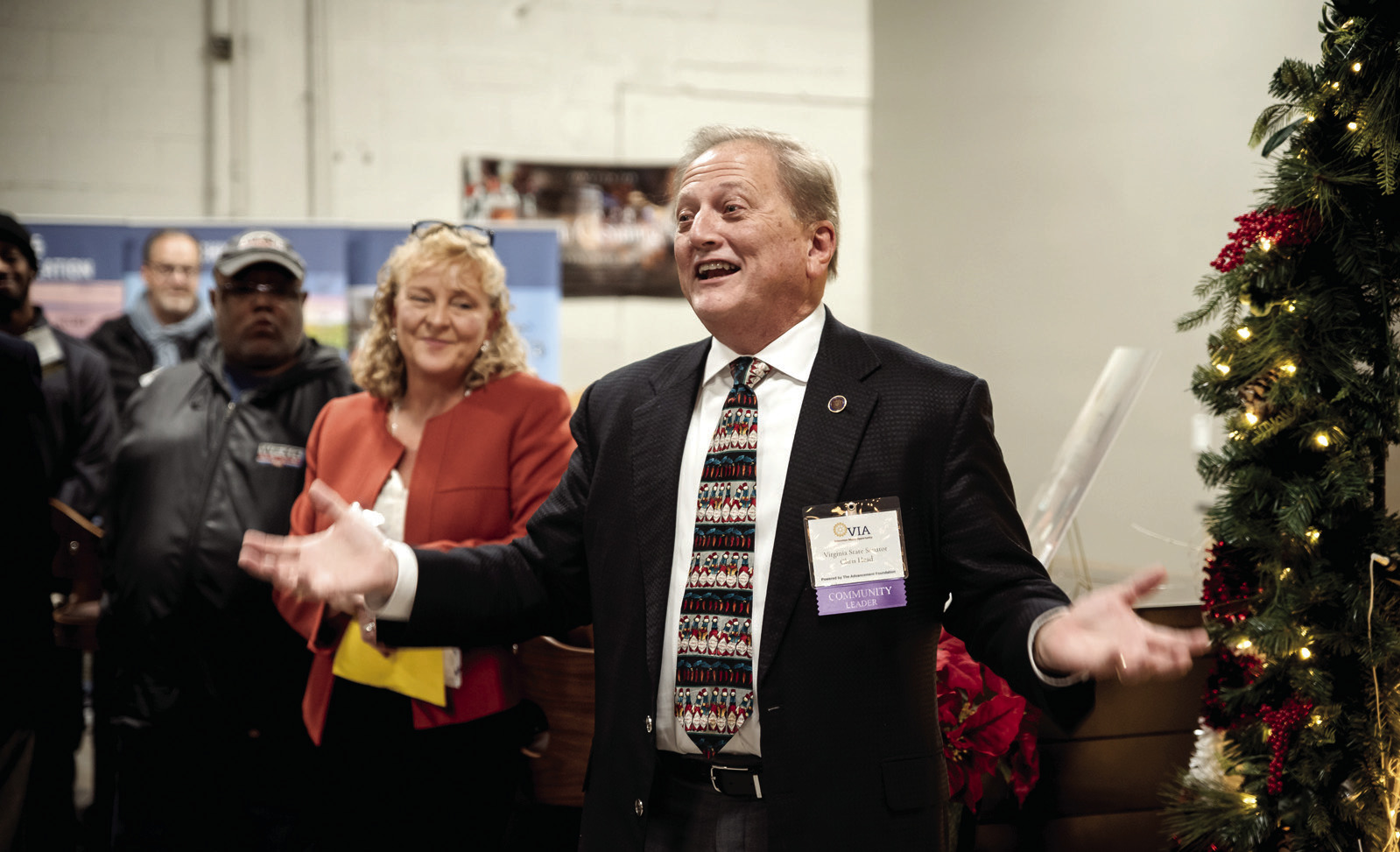 CHRIS HEAD, state senator representing the Third District, gestures as he speaks to the gathering at VIA last Wednesday. Looking on is Annette Patterson, president of The Advancement Foundation. (Keely Massie photo)