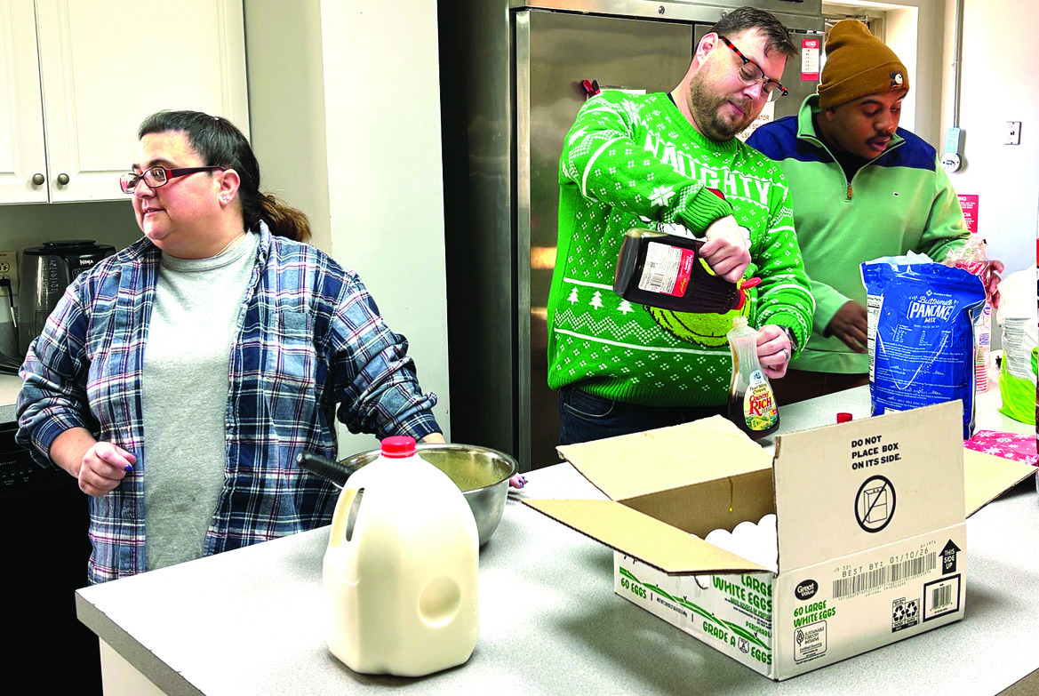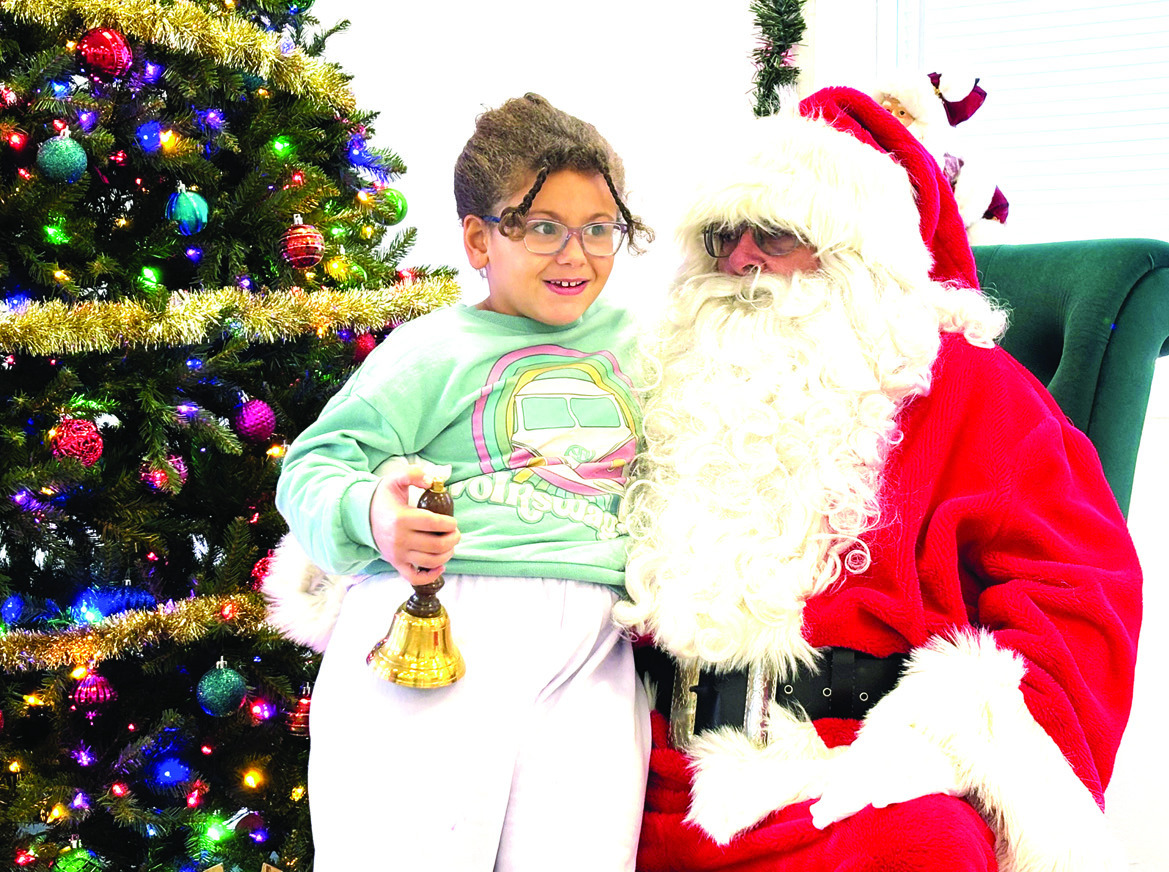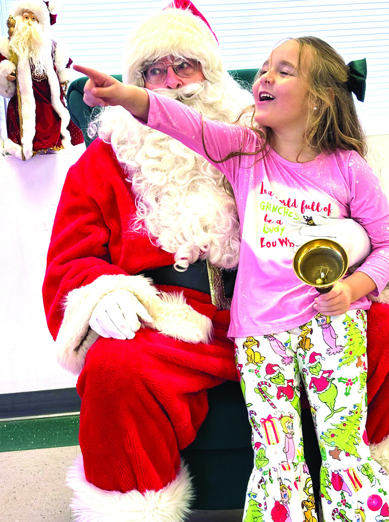 At Fairfield Rescue Squad’s annual Breakfast with Santa Saturday morning, pancakes, sausage and bacon were on the menu, along with some fun chats with the man from the far north. Among the scenes were (clockwise from top left) Julian Deaton shrugging when Santa asked him what he wanted for Christmas; Aaliyah Martin telling Santa what she wanted; squad members Jennifer Tyree, Matt Daniels and Jeremiah Aldridge preparing food; and Paisley Hicks responding to her sister’s remark that she (Paisley) had been naughty this year with her own, “You’ve been naughty.” (Mary Woodson photos)
