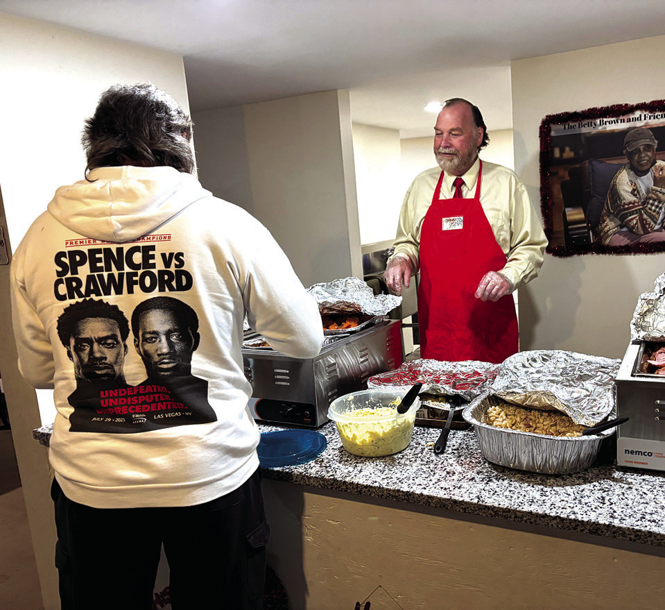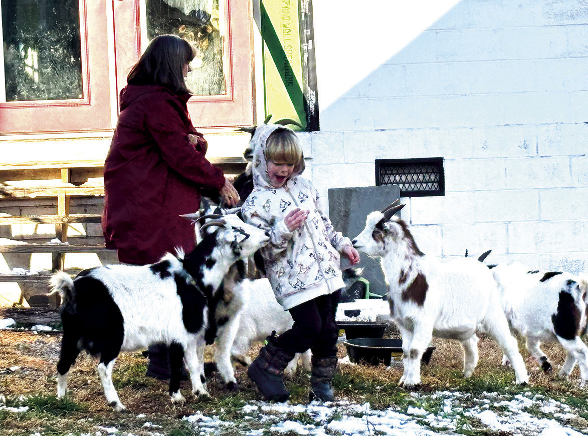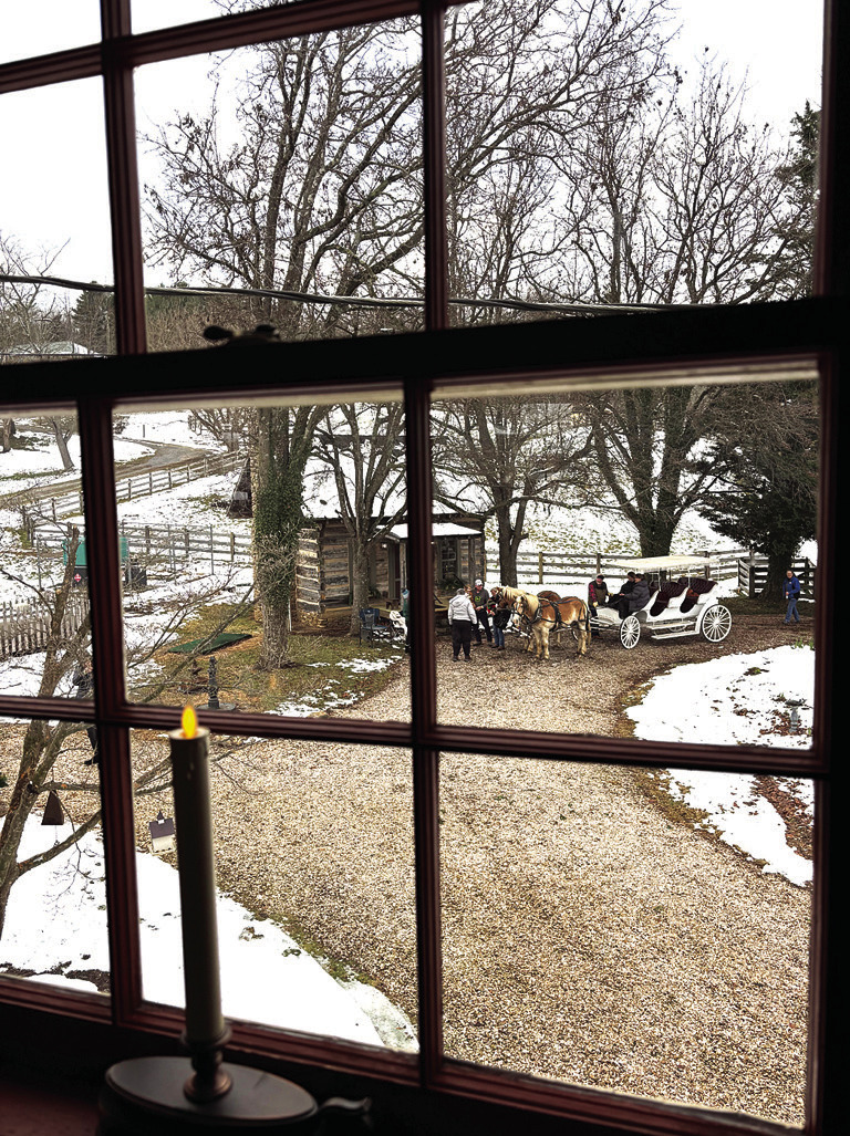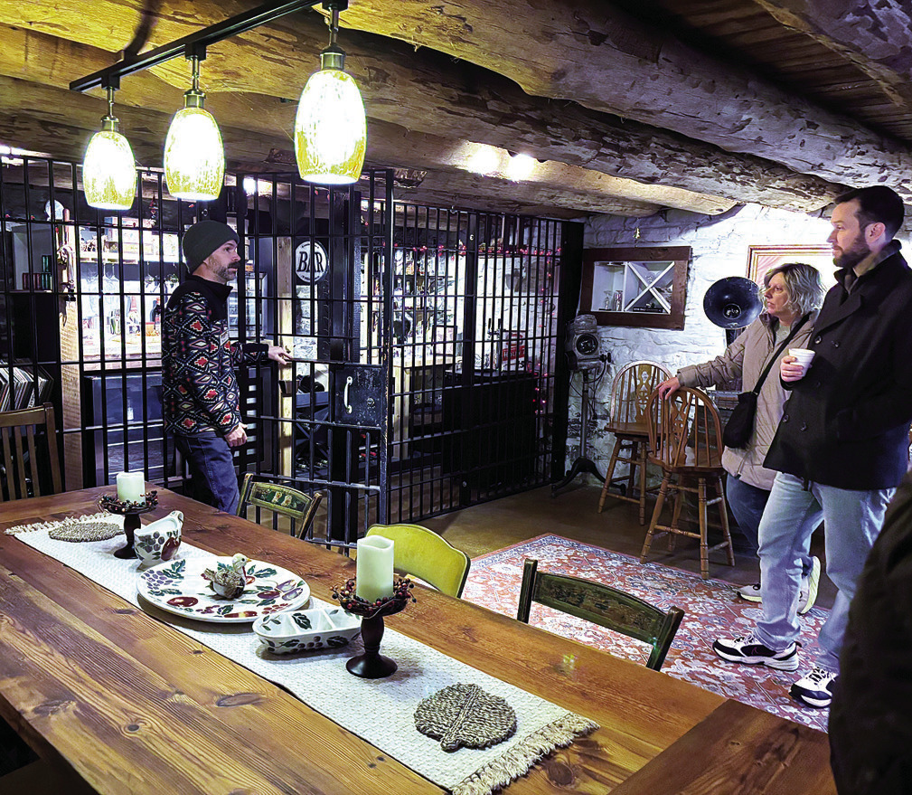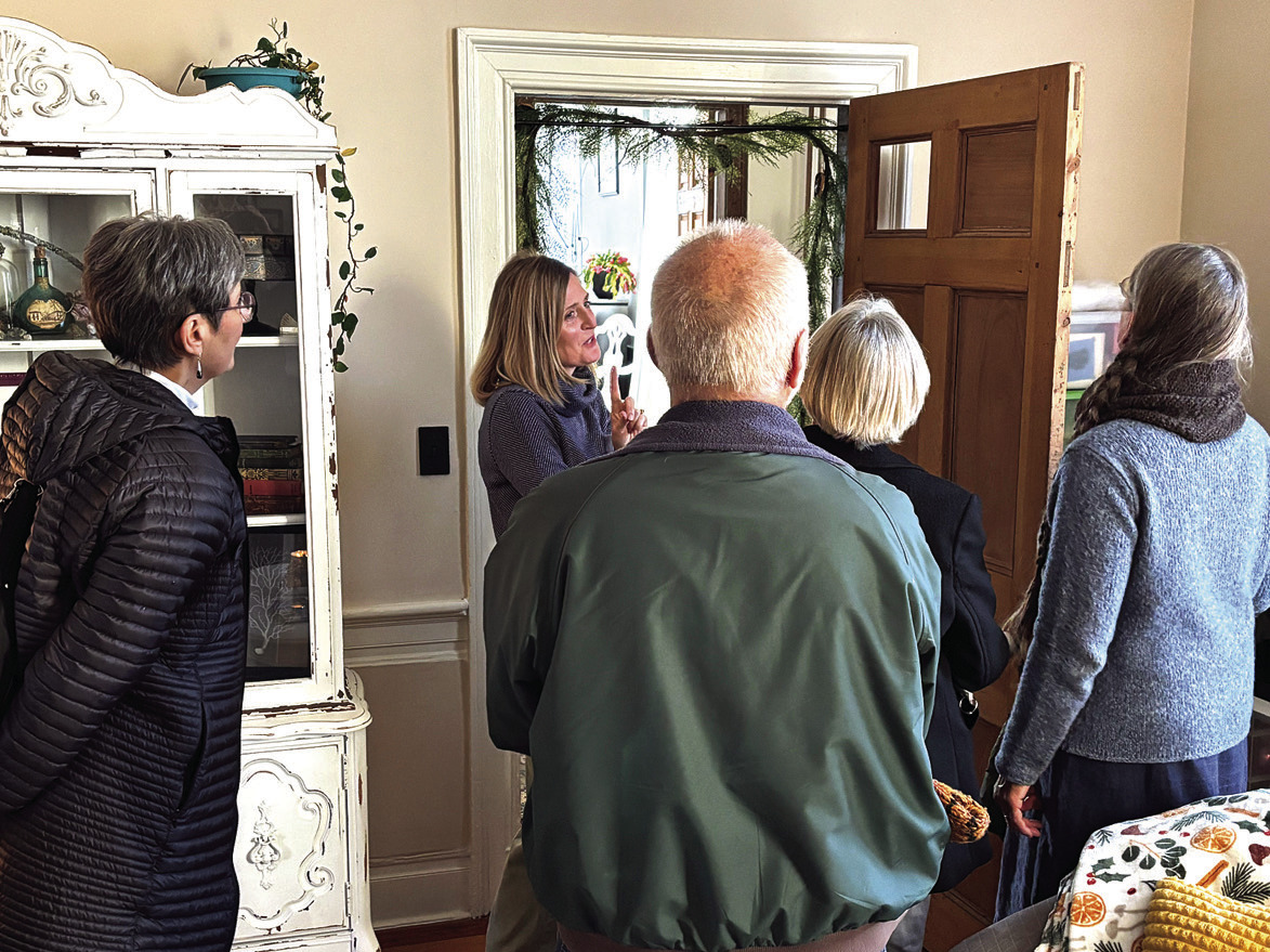 Brownsburg’s “Christmas in the Country” celebration Saturday included a wide range of activities, from a house tour to holiday food, a visit from Santa and even a chance to pet goats thanks to Hailey Moore’s Heritage Pets. Among the scenes were (clockwise from above) Mattox McDonald getting some goat love; Patti Subrizi checking out a Christmas tree in the historic Lucas House; a horse-drawn carriage awaits outside the Lucas House; Coleen Piranian explaining the “courting door” at Sleepy Hollow; an old stuffed animal and a Santa adorning a tree skirt in the Lucas House; visitors checking out the 1940s Georgia jail cell bought by the owners of the Old Brownsburg Store B&B and installed in the basement; and a holiday meal being served up at historic Asbury Church. (Mary Woodson photos)