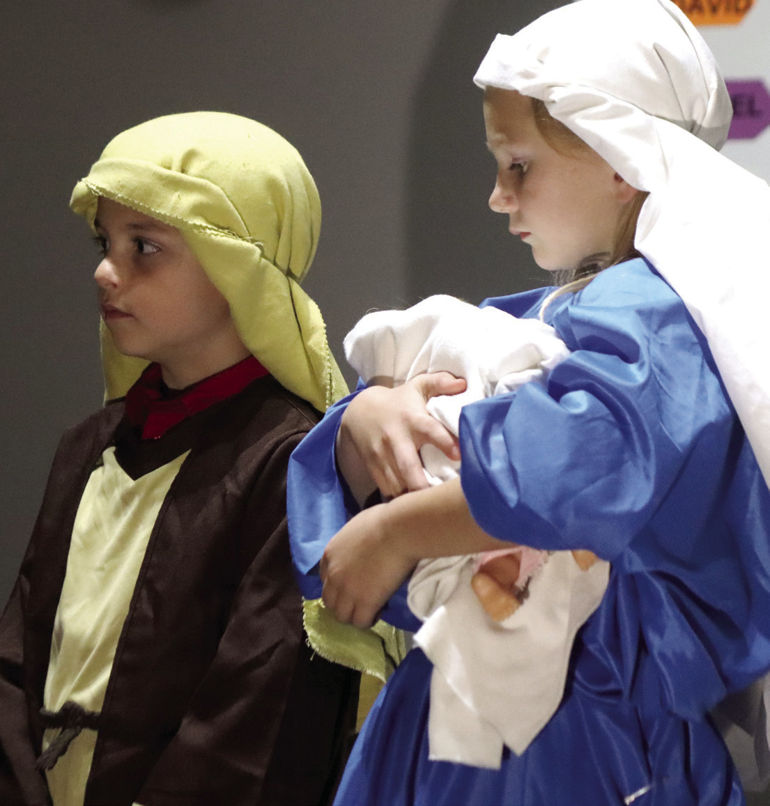 Elementary students at Rockbridge Christian Academy presented their Christmas program, entitled “Stories of the Savior,” last Thursday. ABOVE, Joseph and Mary, portrayed by Adine Chambers and Carly Potter, arrive as the nativity story is read. (all photos by Stephanie MIkels Blevins)